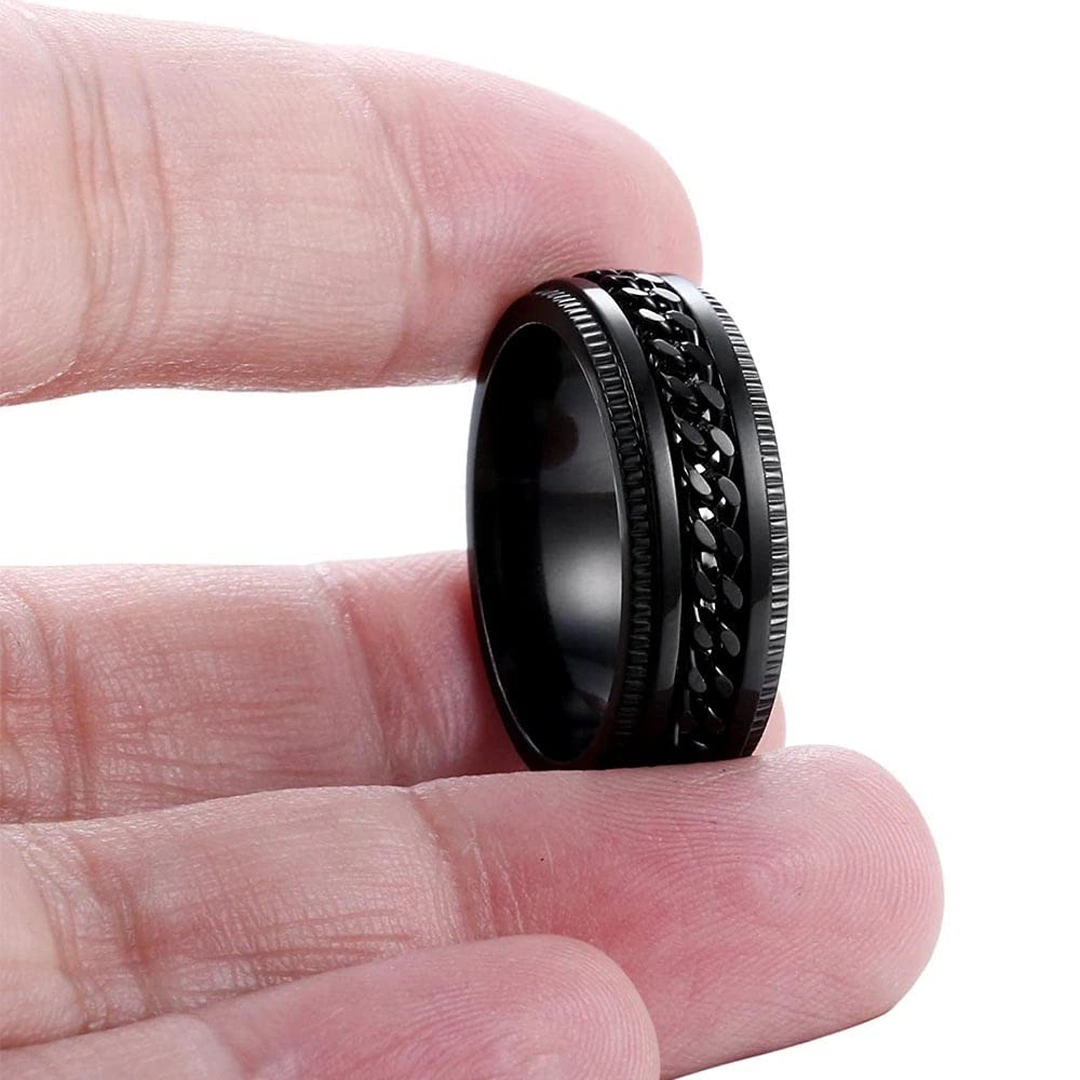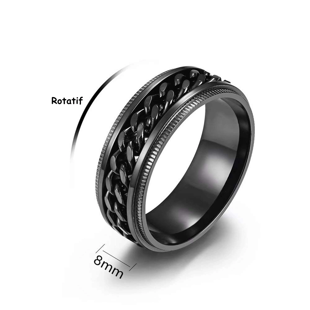 Bague Anti Stress Homme Acier Noir à Chaîne Cubaine Rotative