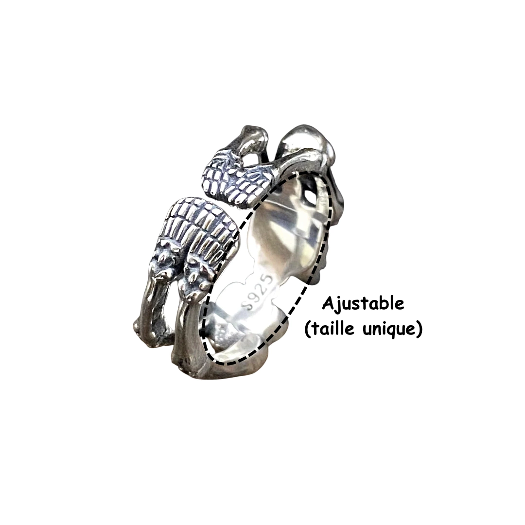 Bague squelette relax en argent 925 : un design détaillé, ajustable et audacieux pour un style rock, gothique ou alternatif.