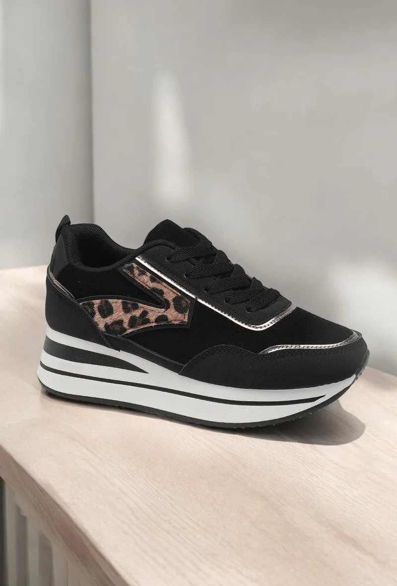 Je craaaaaaque pour les baskets chic et sa hauteur de 4 cms! Touche de léopard sur le dessus elles sont ultra fashion! 100% synthétique, elles sont d’un entretien facile. Couleur disponible: noir