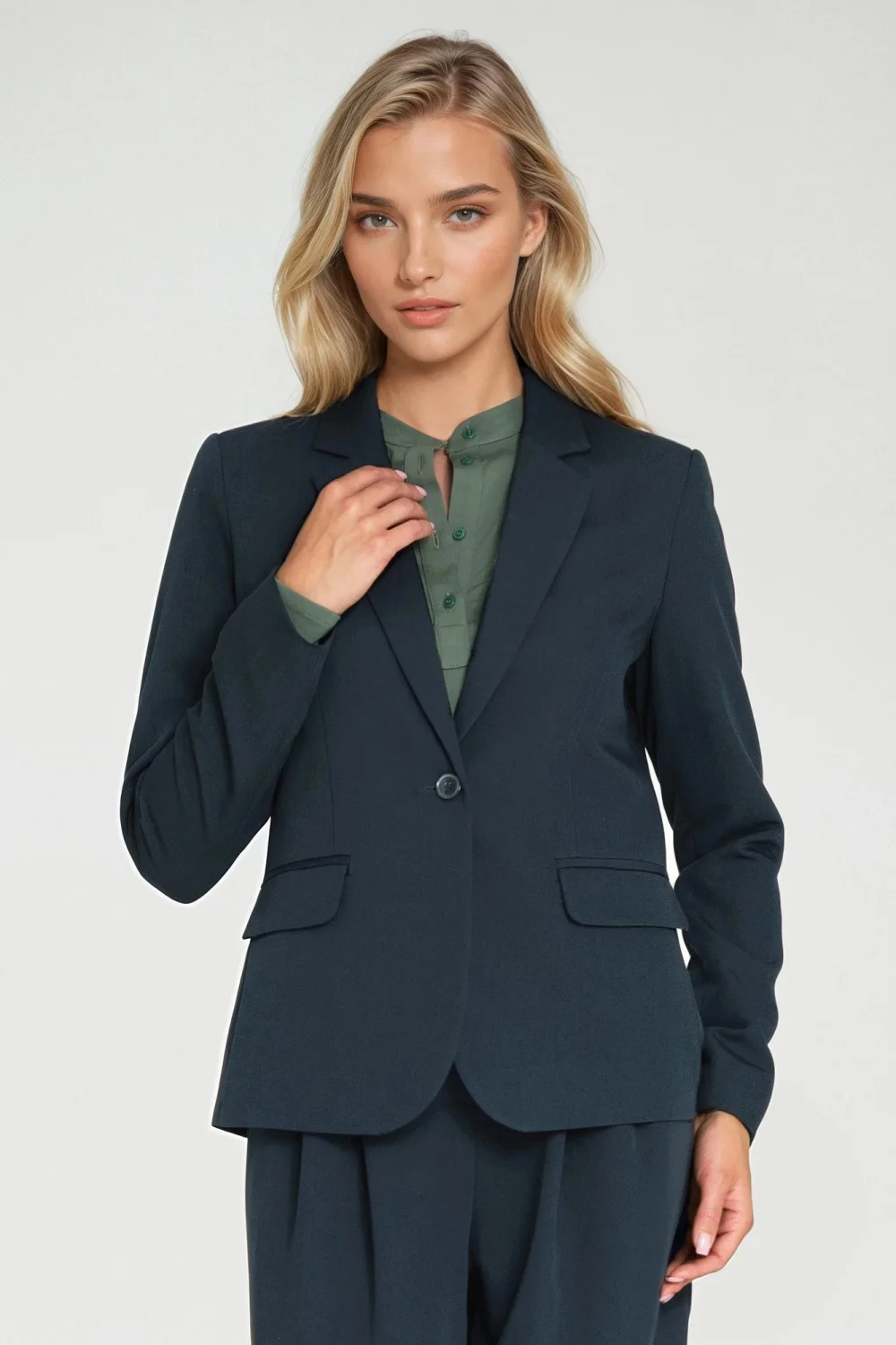 Une veste élégante pour femme de coupe ajustée, adaptée à la silhouette, est un choix idéal pour les femmes qui apprécient la tradition dans une version moderne. Le modèle possède un col avec des revers classiques, des manches longues et des épaulettes intégrées qui sculptent subtilement la silhouette. La veste a une longueur jusqu’à la ligne des hanches et se ferme avec un seul bouton, soulignant ainsi la coupe ajustée. À l’avant, il y a des poches à rabat et le tout est fini avec une doublure, garantissant un confort de port et une allure élégante. Parfait pour les tenues de bureau et décontractées.