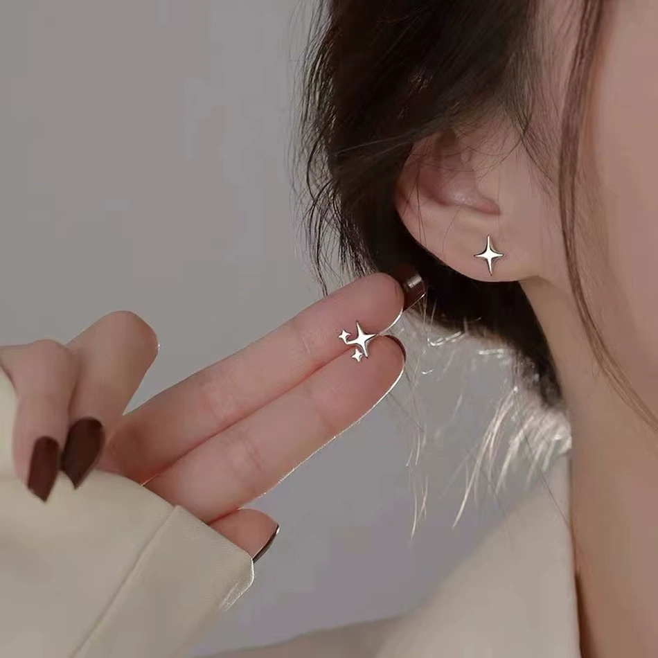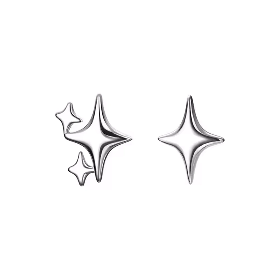 La première boucle met en valeur une étoile de 8 x 9 mm, simple et intemporelle, tandis que la deuxième boucle combine une étoile centrale accompagnée de deux petites étoiles pour un ensemble harmonieux de 10 x 9 mm, créant un équilibre parfait entre simplicité et complexité. La teinte naturelle de l’argent met en valeur chaque détail, ajoutant une touche éclatante et moderne à votre look.
