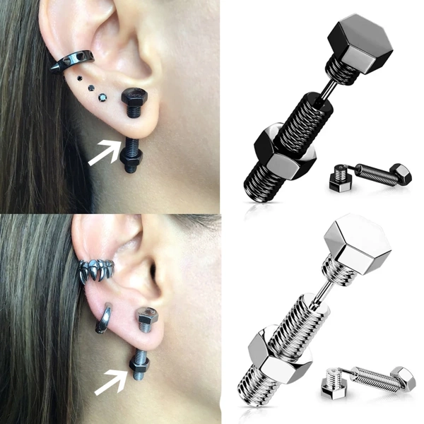 Nos boucles d’oreilles « Éclat Industriel » sont le choix parfait pour ceux qui voient la beauté dans les détails les plus inattendus. Inspirées par les vis à tête hexagonale et leurs écrous, ces créations en acier chirurgical ajoutent une touche de robustesse à ton style gothique Vendues par paire