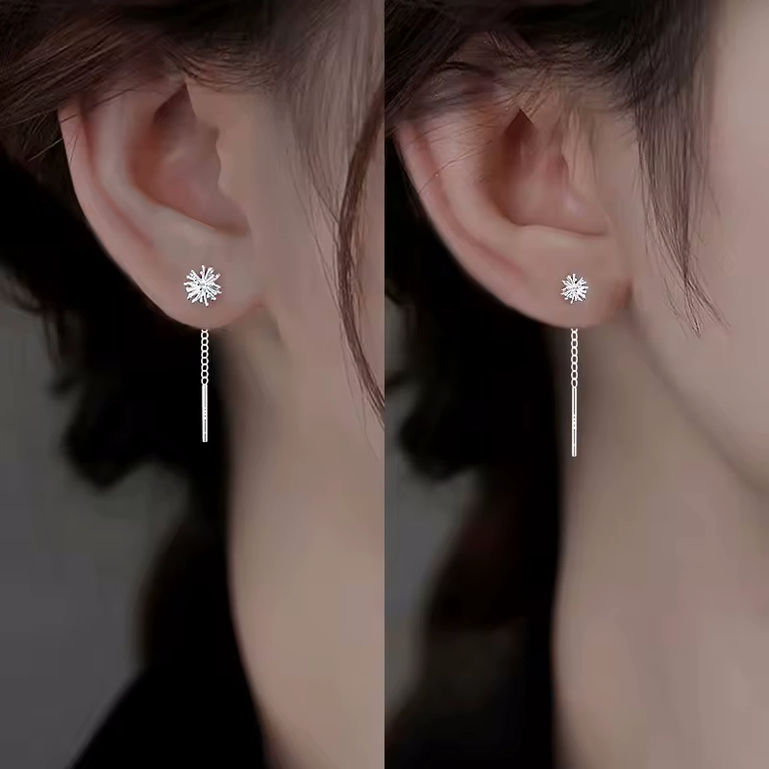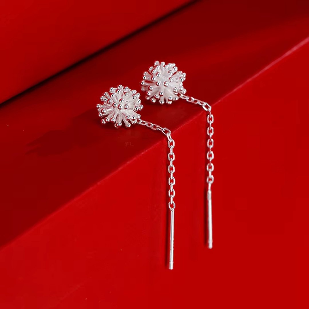 Boucles D’Oreilles Pendantes Pissenlit Argenté