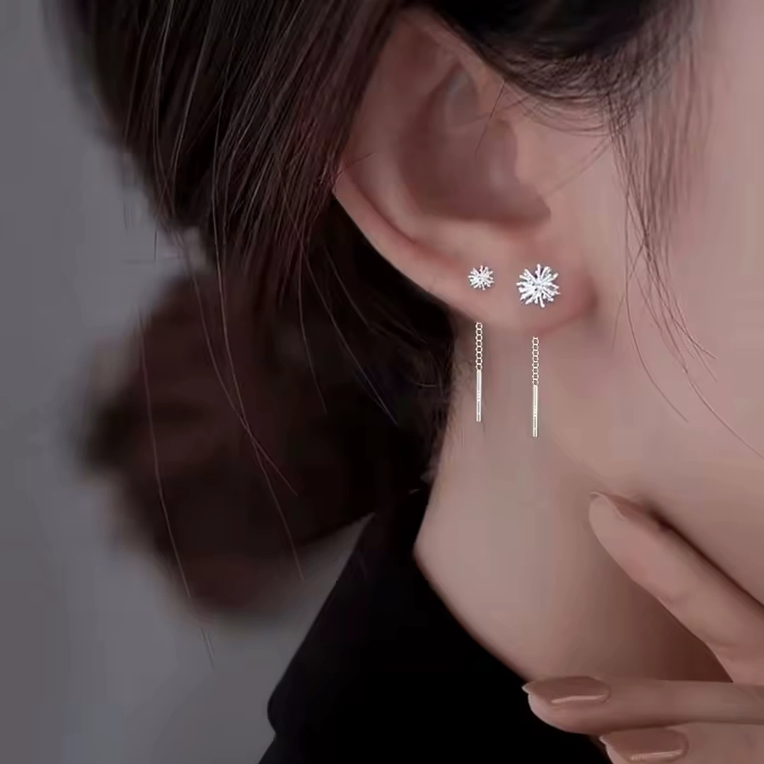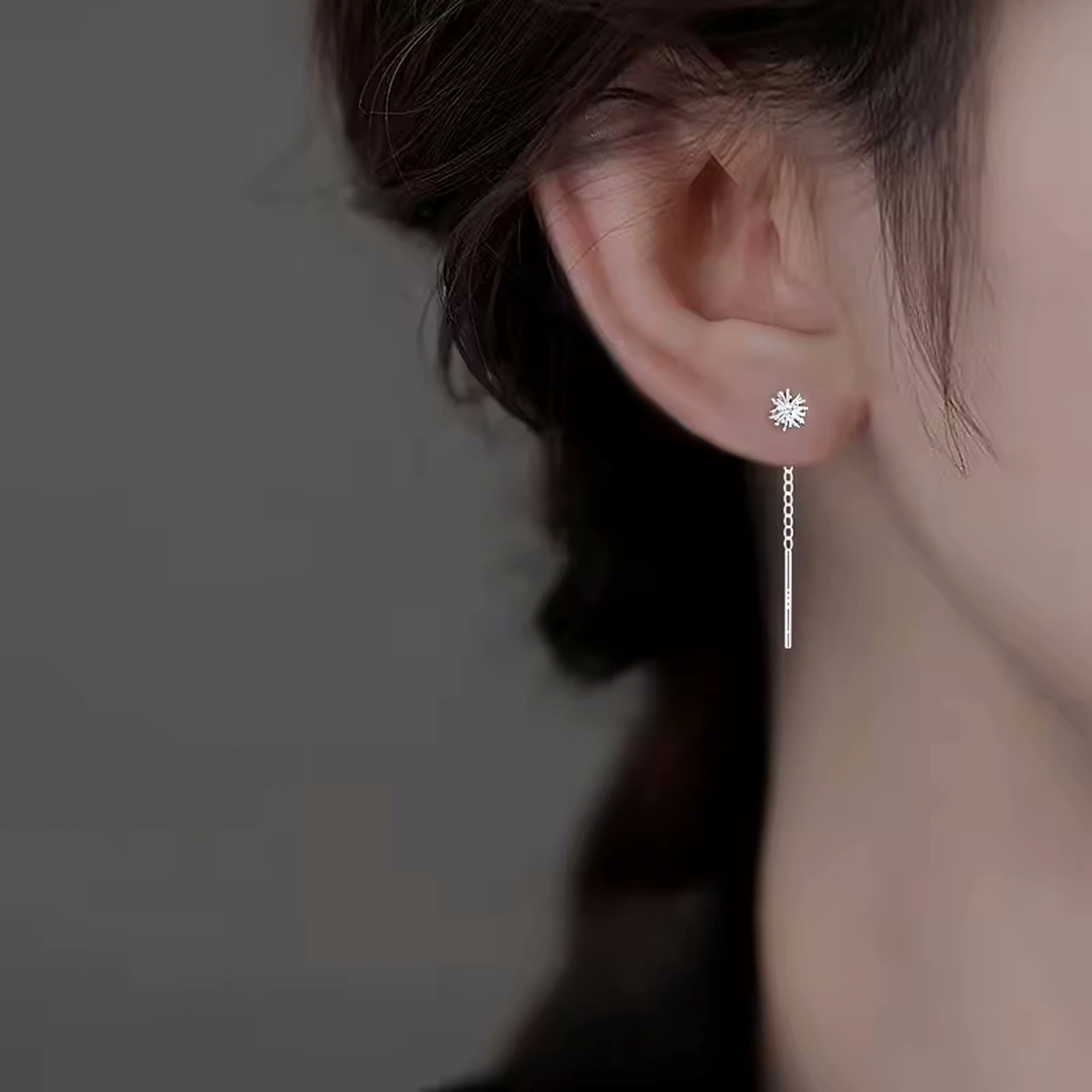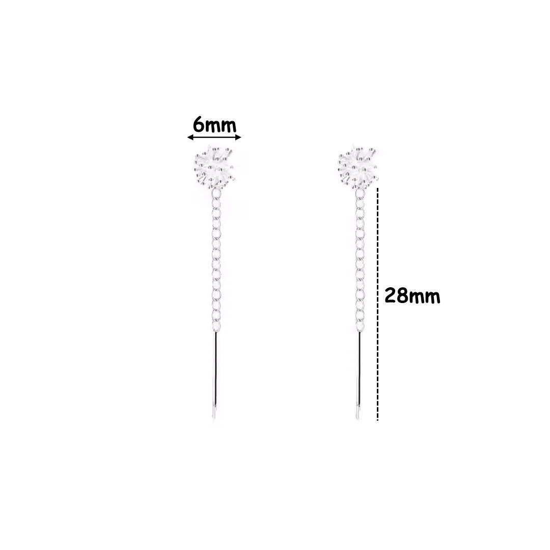 Comme une brise effleurant un champ de pissenlits argentés, ces boucles d’oreilles révèlent une harmonie subtile entre finesse et éclat. Leur fleur délicate, d’un diamètre au choix de 6 ou 8 mm, déploie ses pétales aux extrémités argentées qui caressent tendrement le lobe.