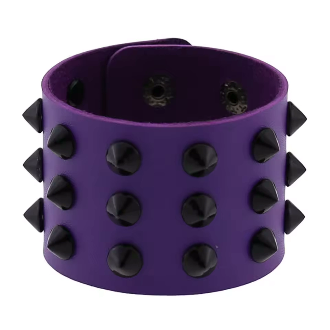 Bracelet Punk à Clous Coniques – Similicuir Noir ou Violet