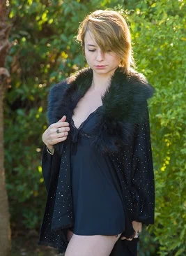Cape noire en cachemire et petites strass