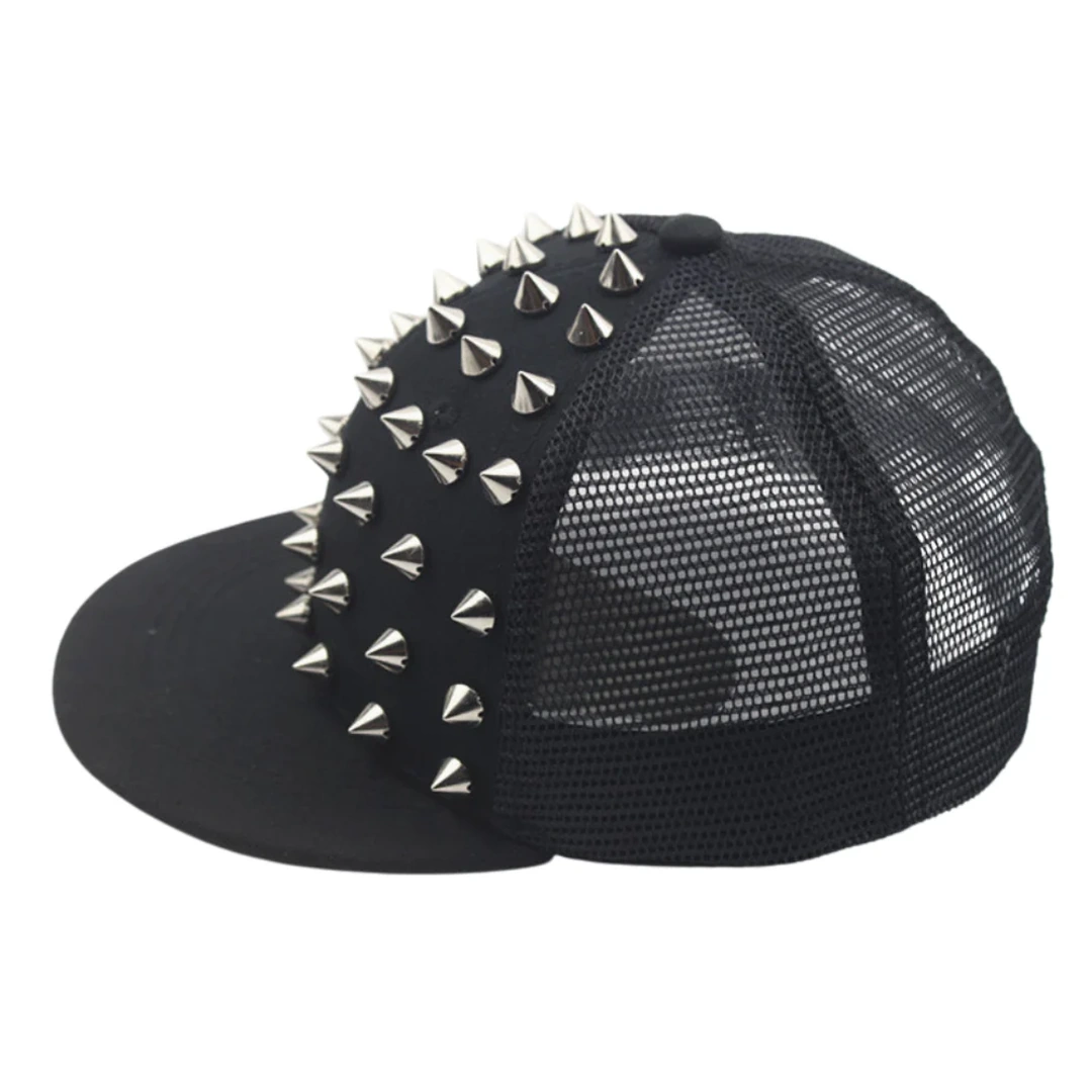 Casquette Trucker Noire Cloutée Unisexe Mesh Arrière