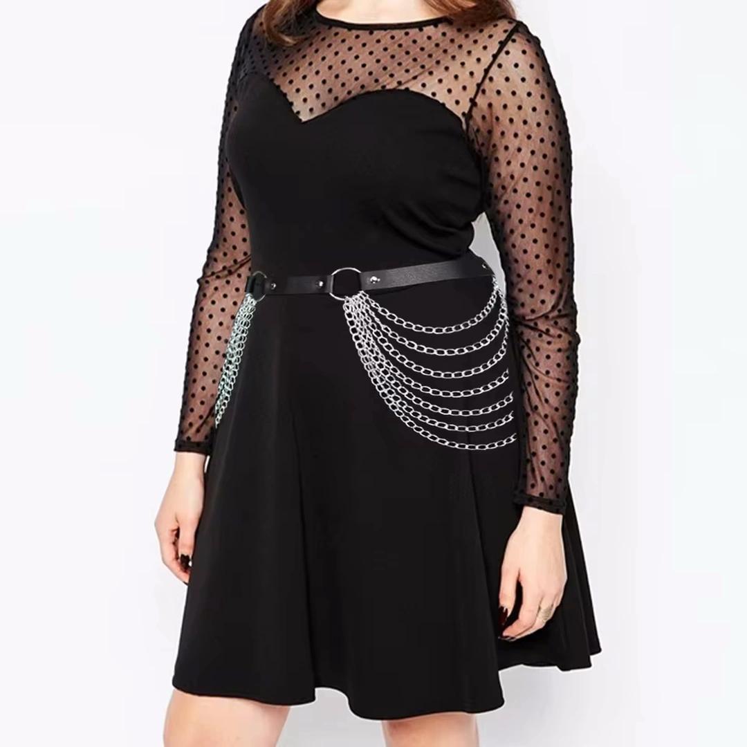Sublimez votre taille avec cette ceinture en cuir PU ornée de chaînes métalliques pendantes. Parfaite pour un look gothique ou punk, elle se distingue par son allure audacieuse.