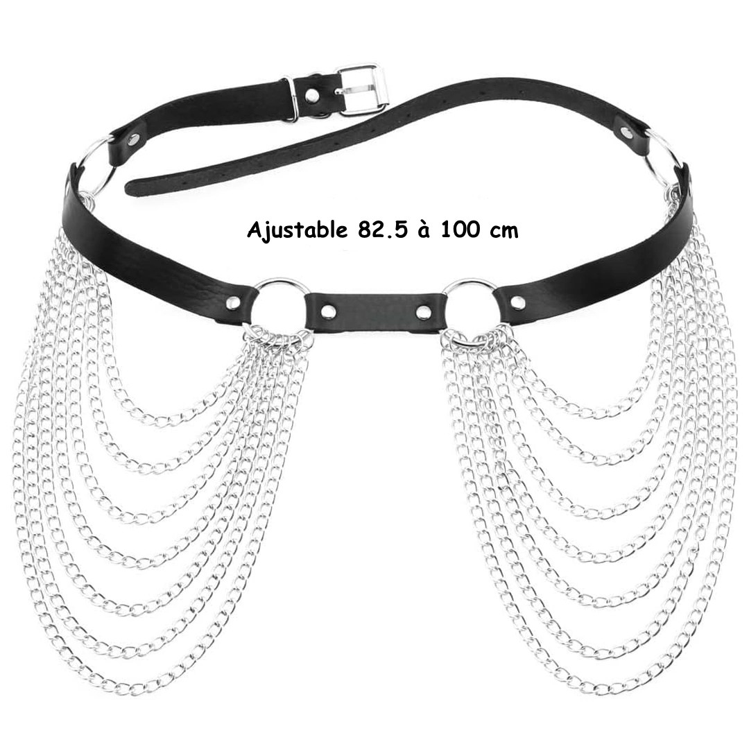Une cascade de chaînes, suspendue gracieusement à chaque côté de votre taille, tel un écho métallique qui danse sous vos mouvements.