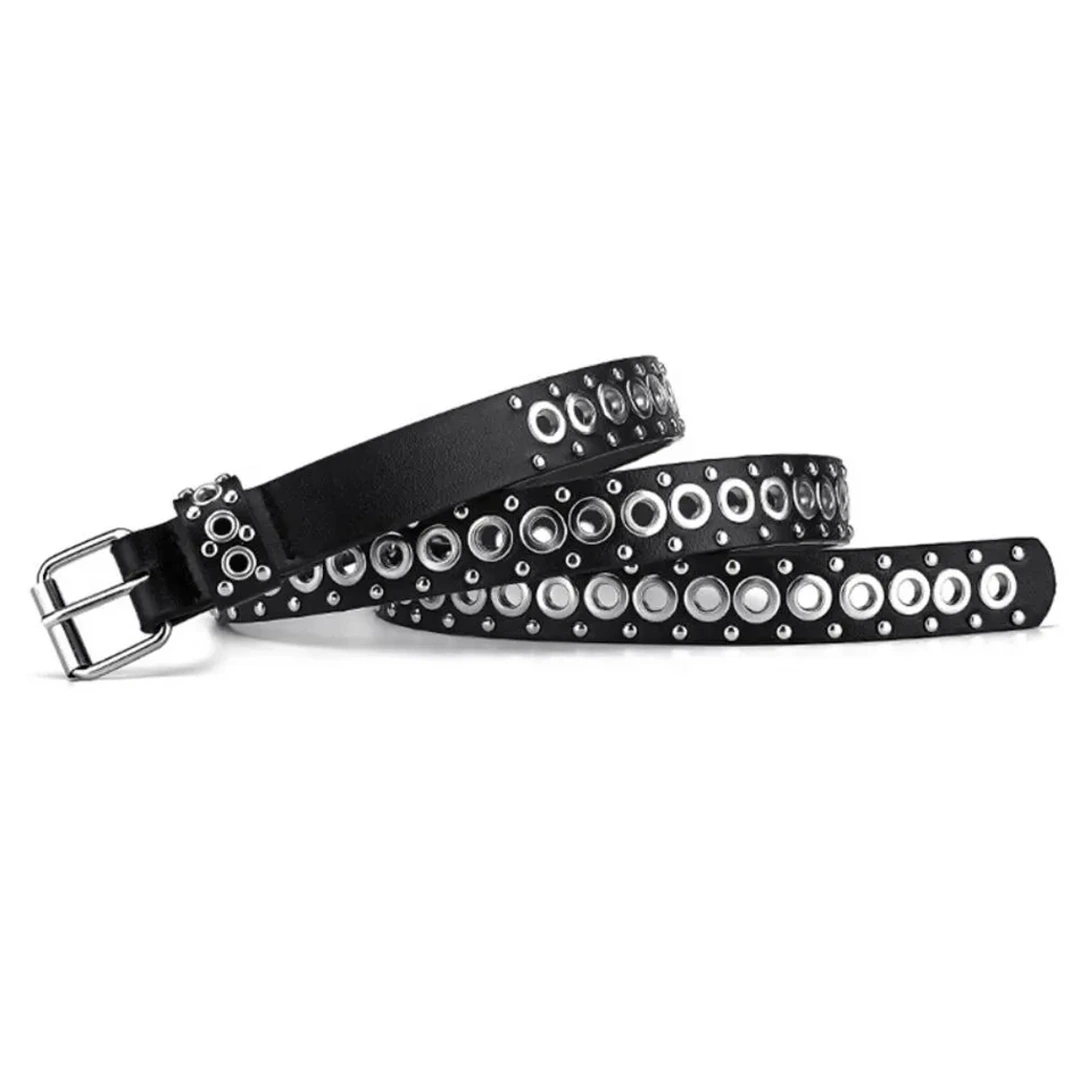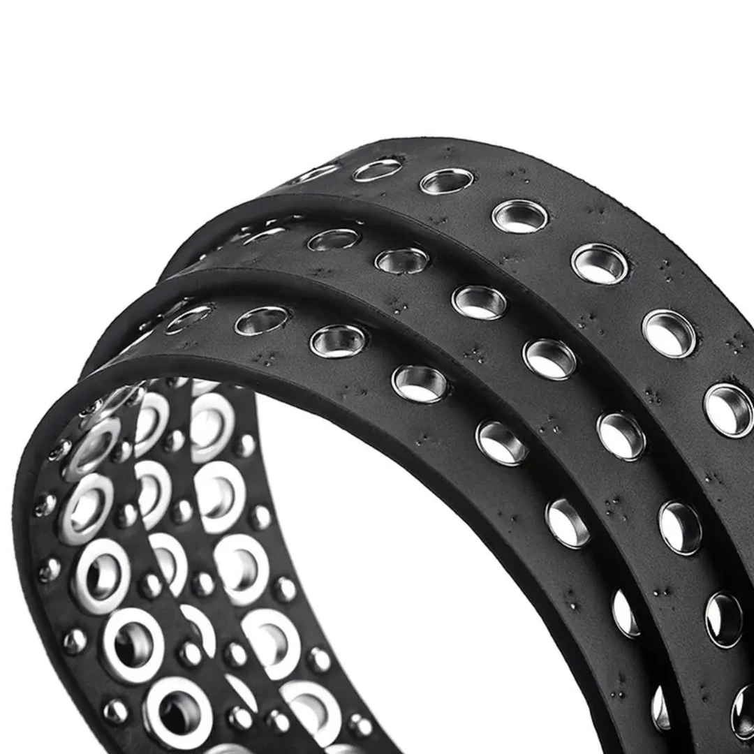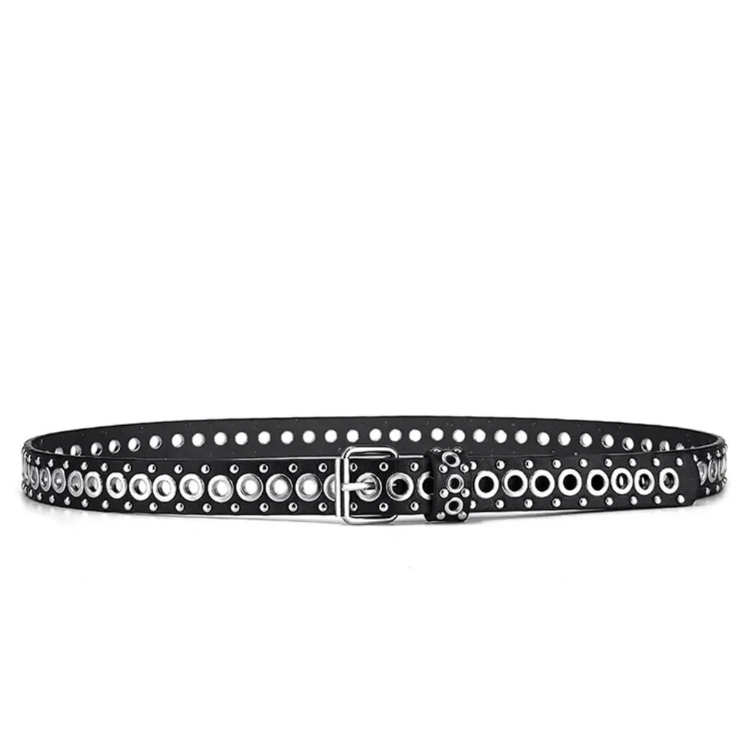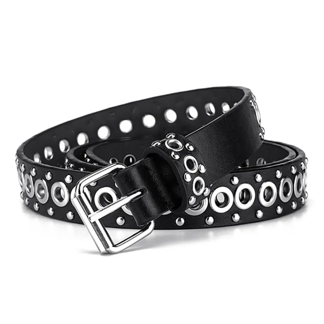 Ceinture Femme Cuir Noir avec Œillets Métalliques