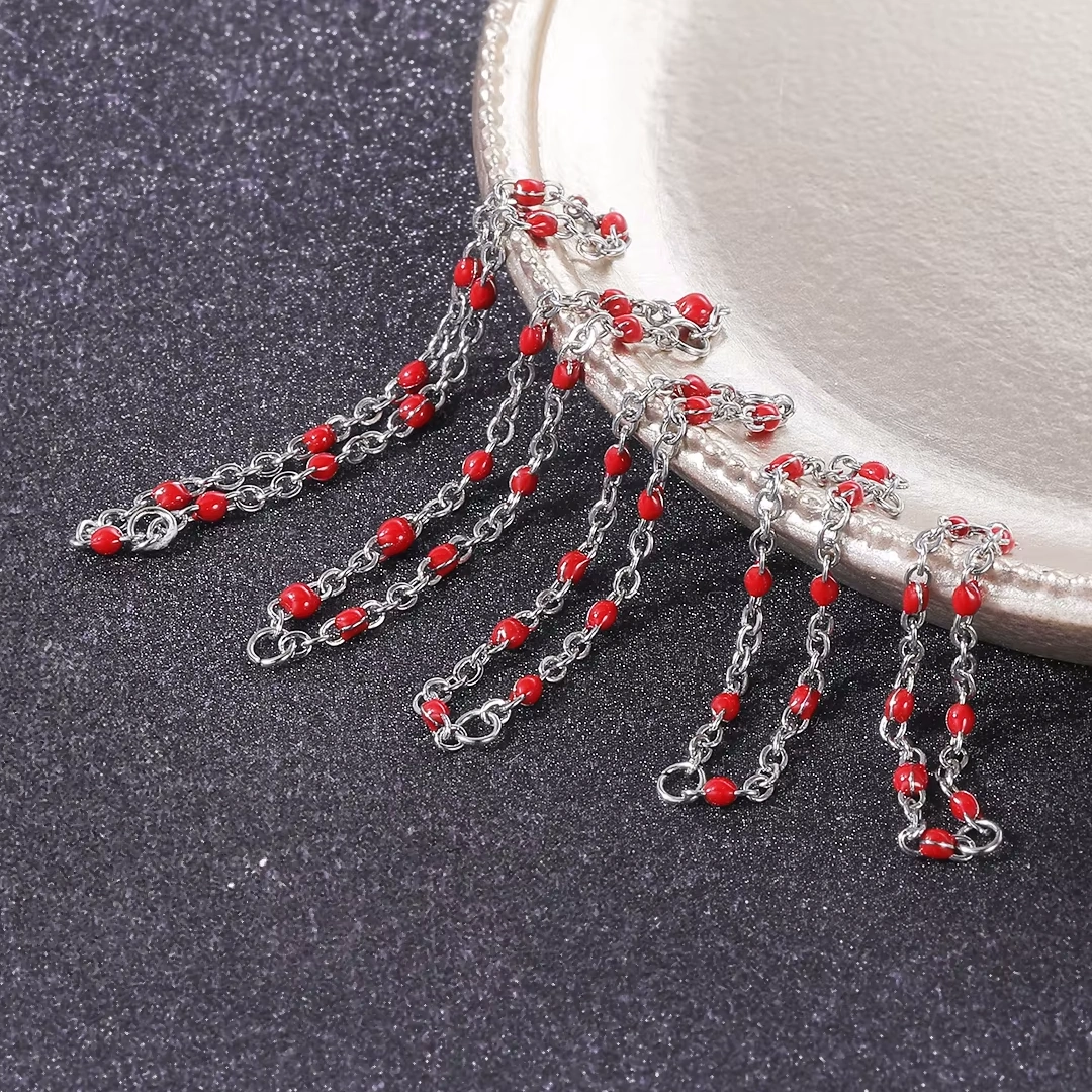 Chaîne de Nez à Double Rangée Perlée Rouge 32-50 mm
