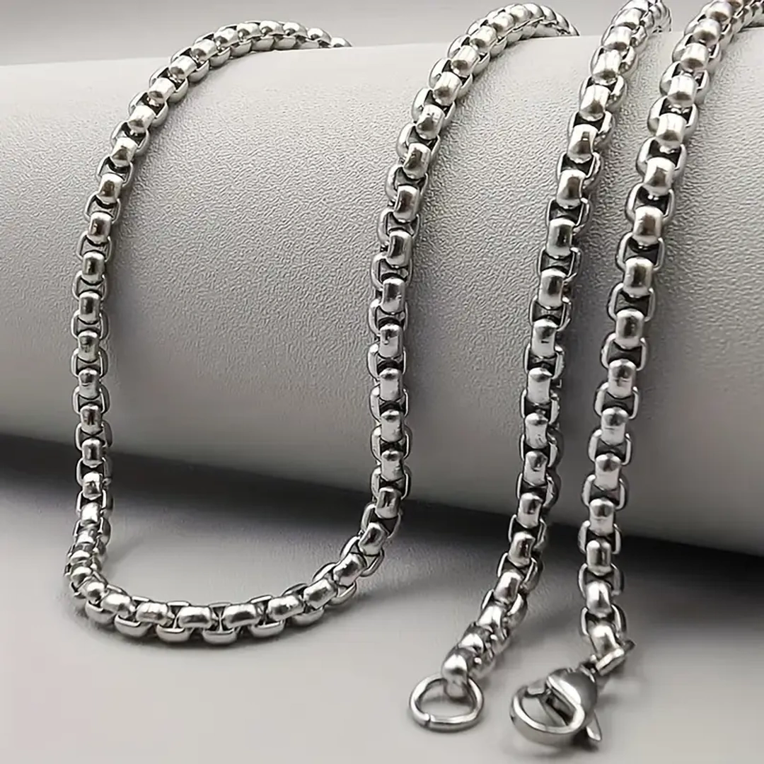 Longue de 60 cm et formée de maillons de 2 mm, cette chaîne en acier inoxydable allie résistance moderne et esthétique intemporelle. Sa finition sobre en fait un collier unisexe, parfait pour qui cherche une élégance discrète, sans jamais paraître banale.