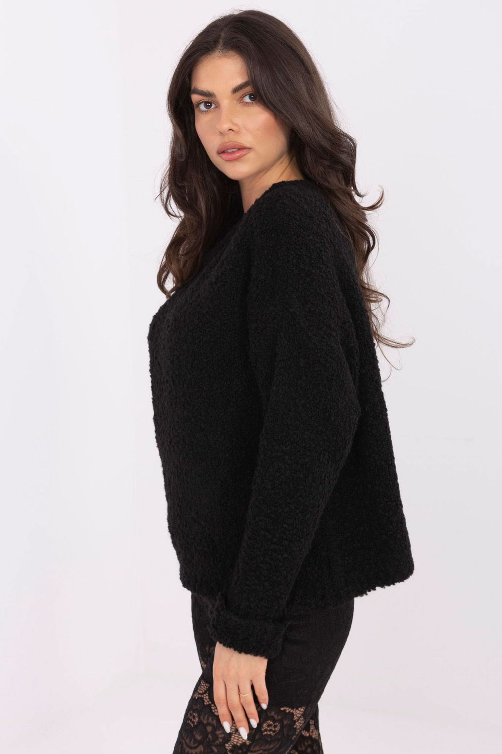 Un pull élégant pour femme au caractère décontracté est un excellent choix aussi bien pour tous les jours que pour le travail. Grâce à la texture variée du matériau, le modèle est à la mode et attire l’attention, tout en restant un élément polyvalent de la garde-robe. Le pull a une longueur standard, des manches longues et un col rond classique, assurant un confort de port et une facilité d’adaptation à différentes tenues. L’absence de fermeture souligne sa forme simple et intemporelle. Fabriqué dans un mélange agréable au toucher d’acrylique, de laine, d’alpaga et de polyester, il garantit chaleur, douceur et longévité. C’est une proposition idéale pour les femmes appréciant le confort, la fonctionnalité et un look à la mode dans leurs tenues quotidiennes.