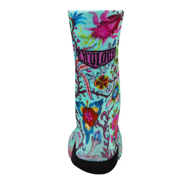 Les chaussettes de cyclisme imprimées de Cycology utilisent des matériaux fonctionnels pour offrir un superbe confort de cyclisme et les motifs originaux ajoutent du style à n’importe quel choix d’équipement.