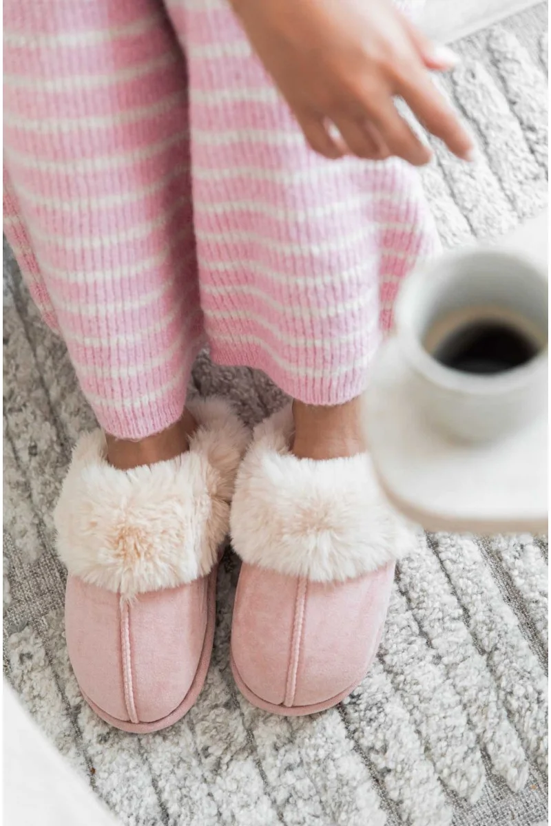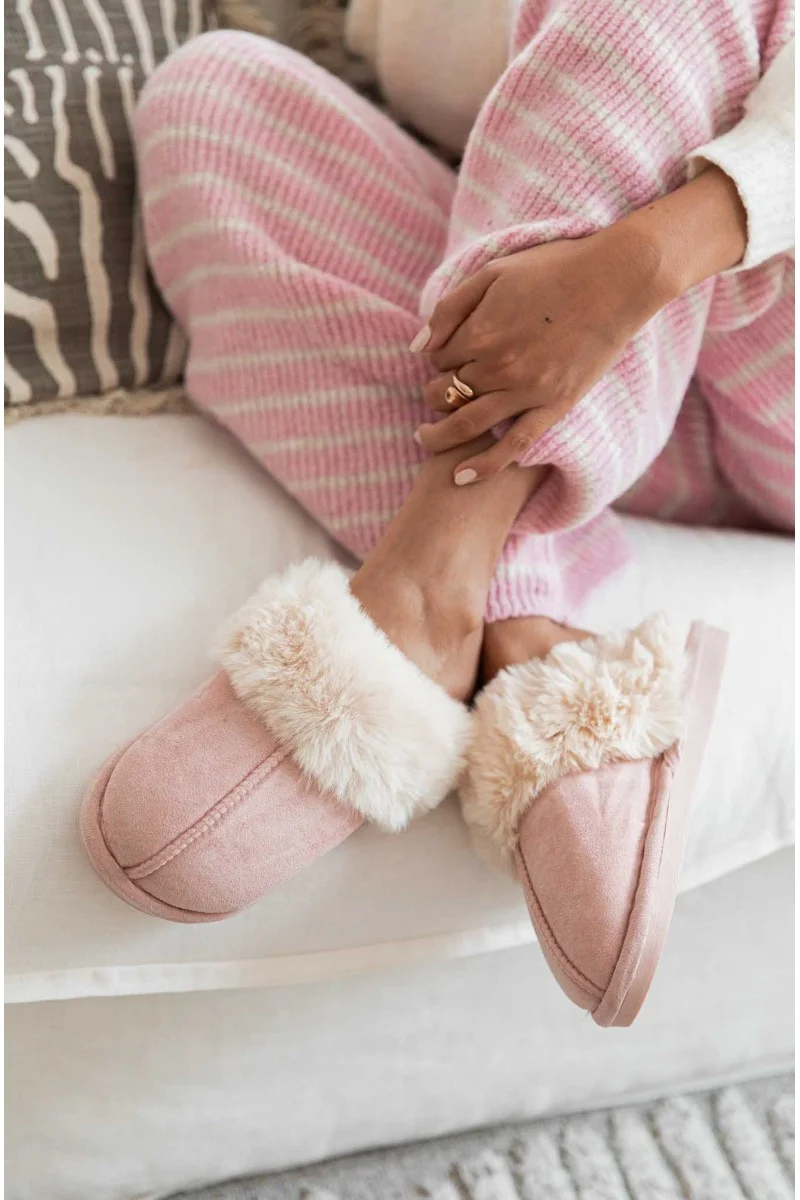 Chaussons daim fourrés rose baby