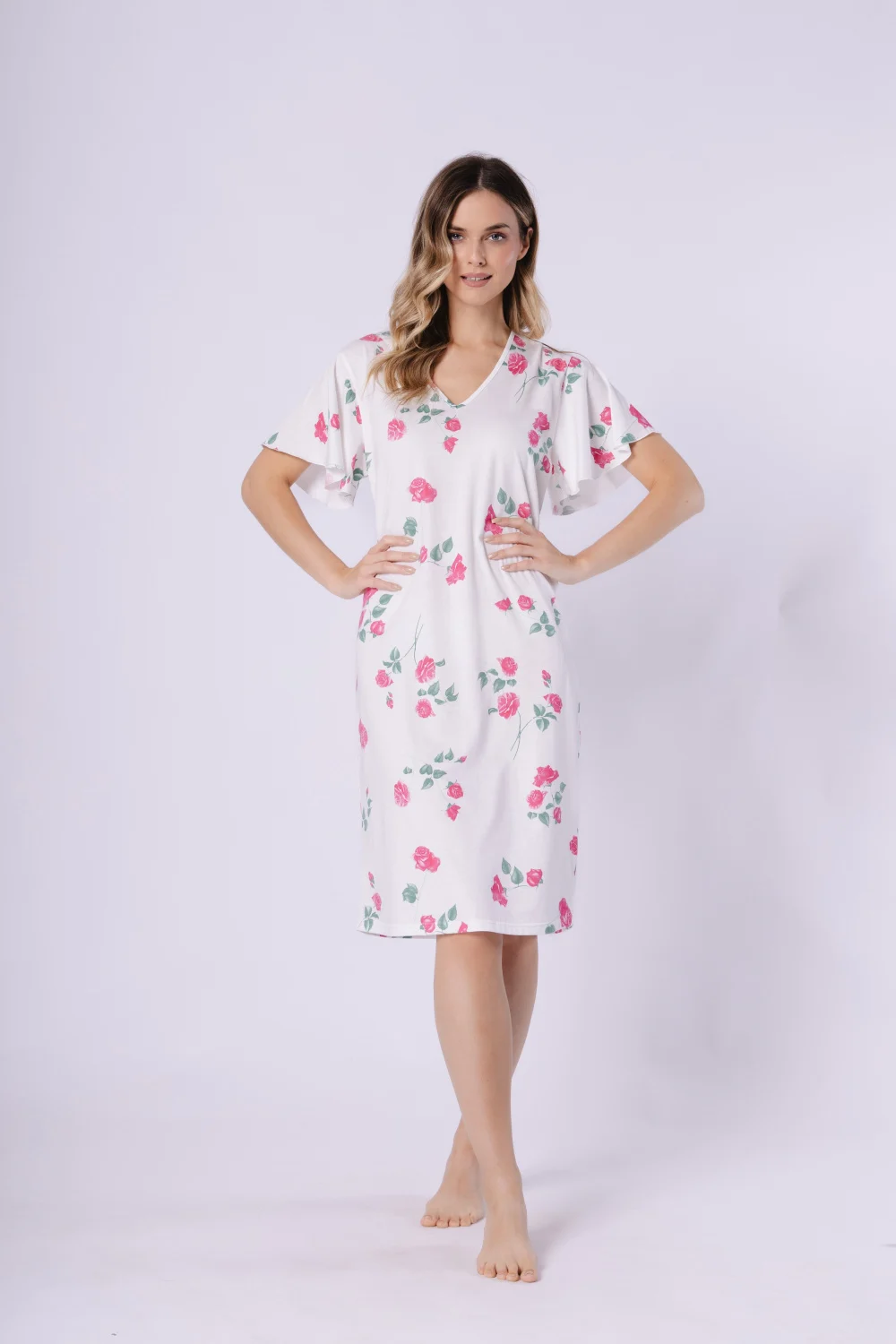 Cette chemise de nuit allie confort et style subtil. Elle a un décolleté en V et une coupe ample et confortable qui assure une liberté de mouvement totale. La courte manche large ajoute de la légèreté et un caractère décontracté, et le tissu doux et aéré avec un imprimé garantit le confort toute la nuit. La chemise arrive au genou et est emballée dans un sac en plastique pratique, ce qui en fait également un cadeau parfait.