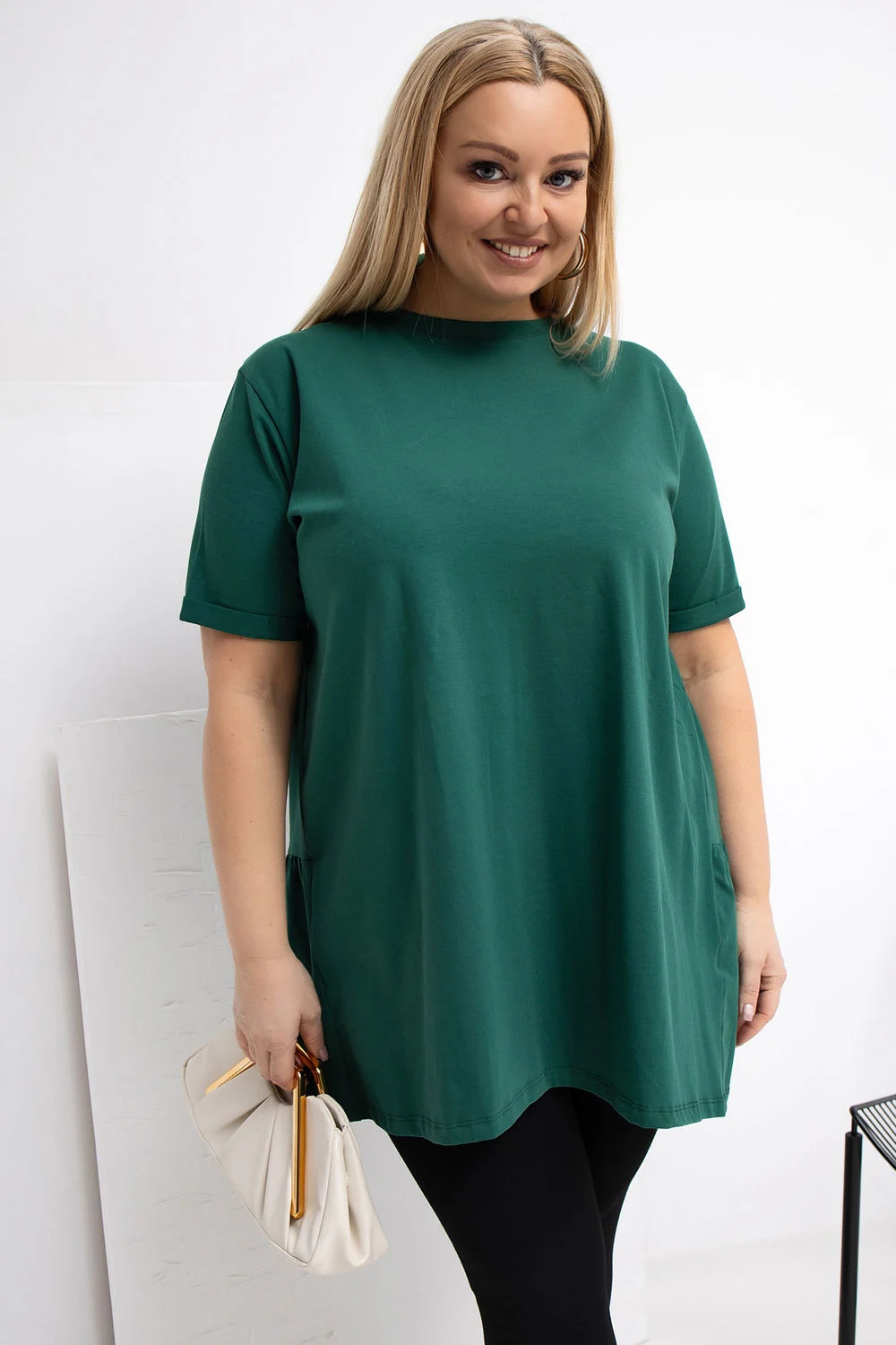 T-shirt décontracté à manches longues, idéal pour toutes les occasions. Fabriqué en coton doux au toucher avec une touche d’élasthanne, il est doux, extensible et confortable à porter toute la journée. Son motif lisse lui permet de s’adapter facilement à de nombreuses tenues. Le modèle a un col rond et des manches courtes, ce qui lui donne un caractère universel et décontracté. L’absence de fermeture souligne sa forme simple et confortable. Un volant à l’ourlet arrière est un atout supplémentaire qui ajoute une touche de féminité à la coupe. Une proposition idéale pour tous les jours avec un jean, un legging ou une jupe.