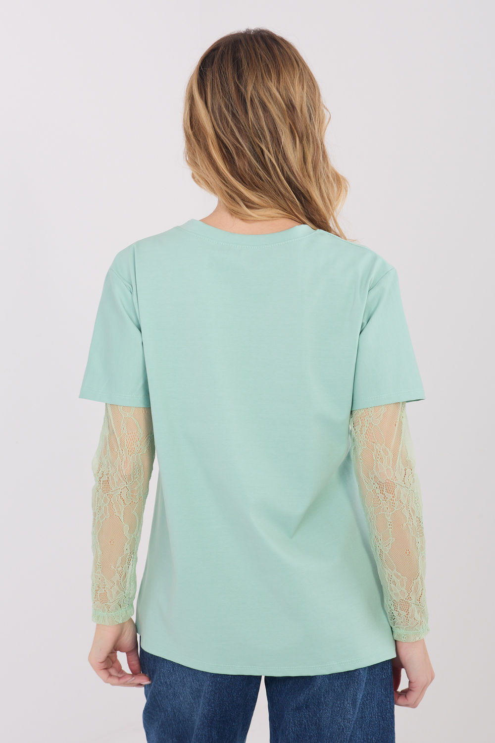 Chemisier pour femmes de tous les jours au caractère décontracté alliant simplicité et accent féminin délicat. Fabriqué à partir d’un mélange de coton, nylon et élasthanne de haute qualité, il est agréable au toucher, respirant et élastique, assurant un confort toute la journée. Le tissu lisse met en valeur le style polyvalent de la chemise, ce qui en fait un excellent choix pour les tenues quotidiennes. Le modèle a une longueur standard et un col rond qui ajoute une élégance classique. Les manches 3/4 en dentelle délicate apportent un détail subtil et élégant, distinguant la chemise des propositions classiques. C’est le choix idéal au quotidien pour les femmes qui apprécient le confort allié à une finition féminine.