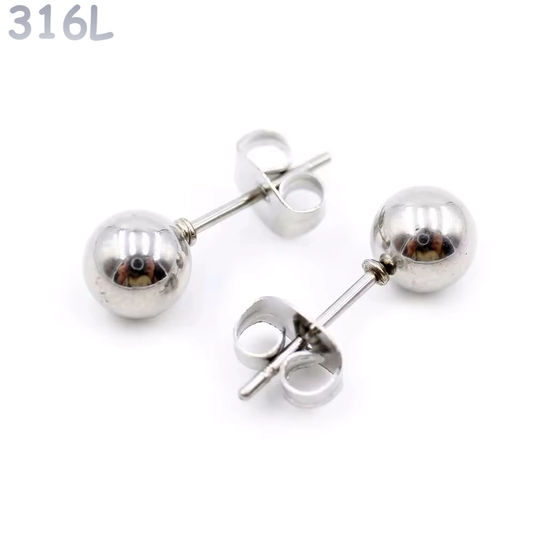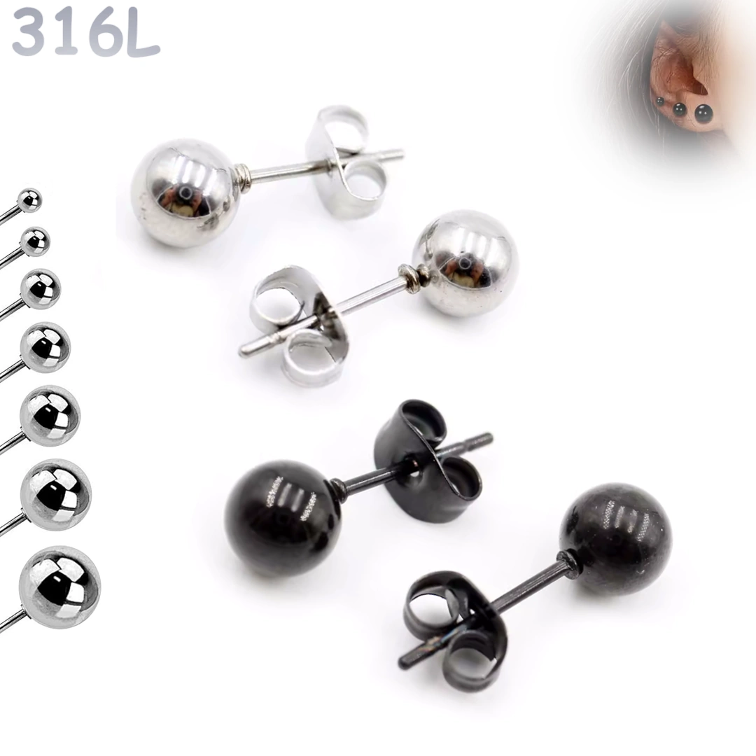 Clous d’oreilles Acier 316L à Boules 2–8 mm