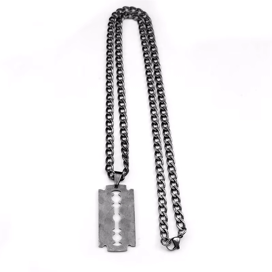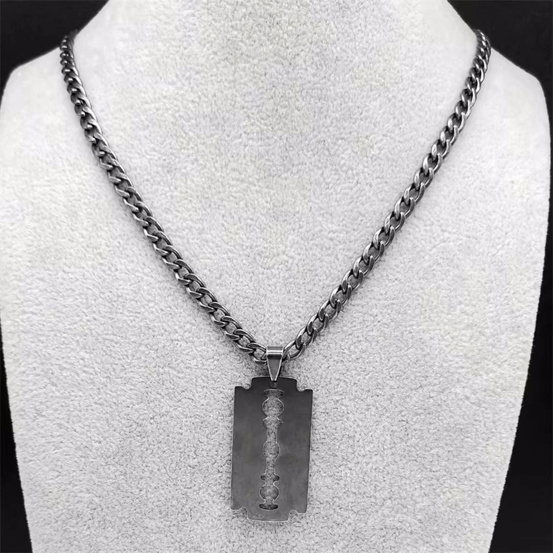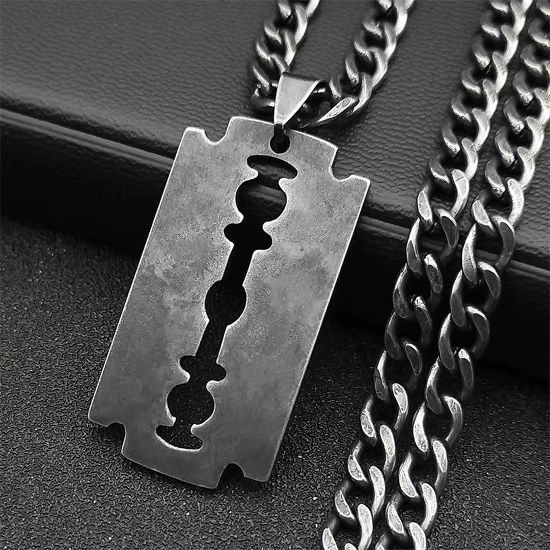 Collier Pendentif Lame de Rasoir en Acier Inoxydable Vieilli