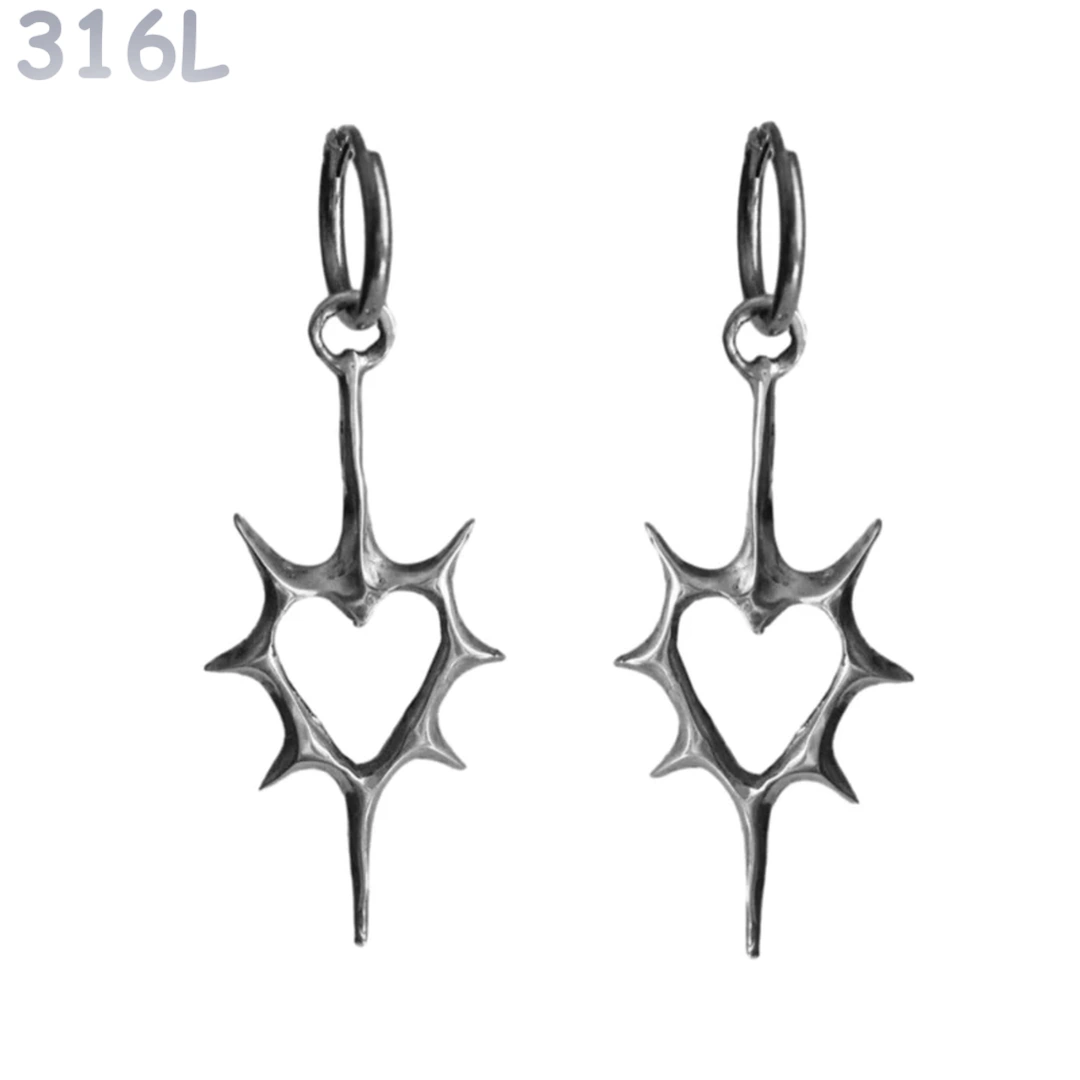 Créoles à Cœur Épineux Suspendu en Acier 316L