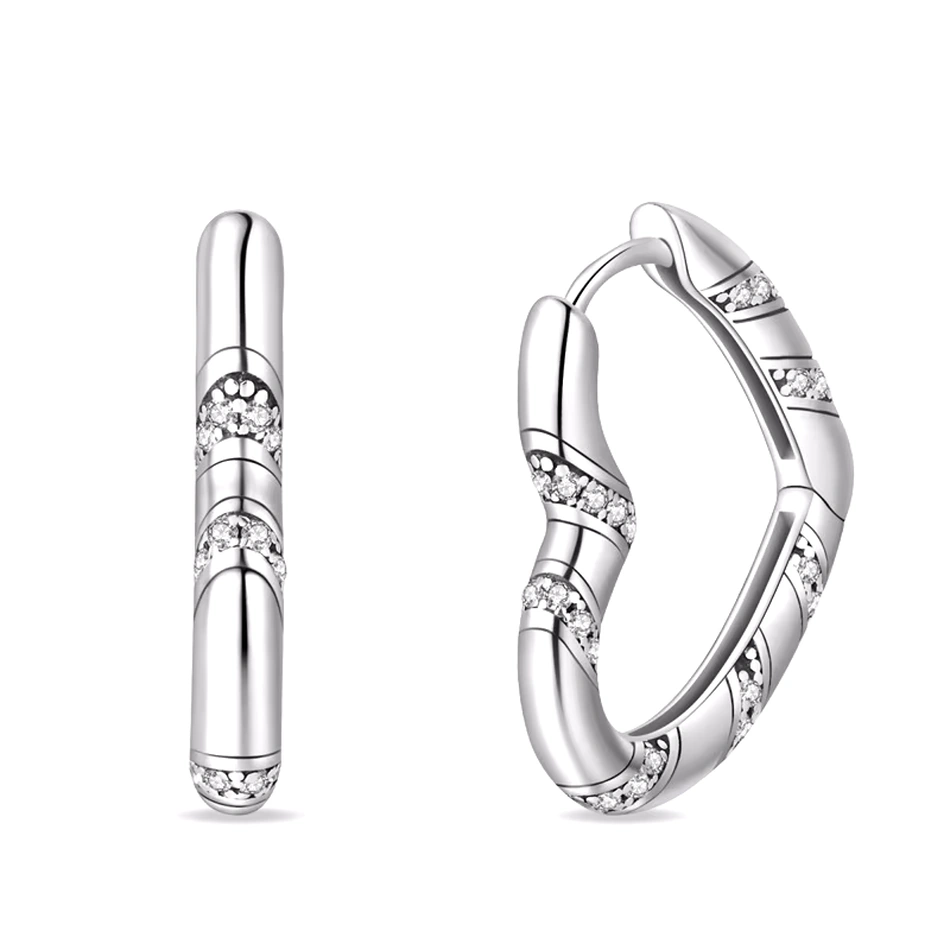 Des boucles d’oreilles en argent 925 sterling en forme de cœur, alliant lignes pures et détails raffinés, avec une alternance d’argent et de zircons pour une brillance subtile et romantique. Vendues par paire