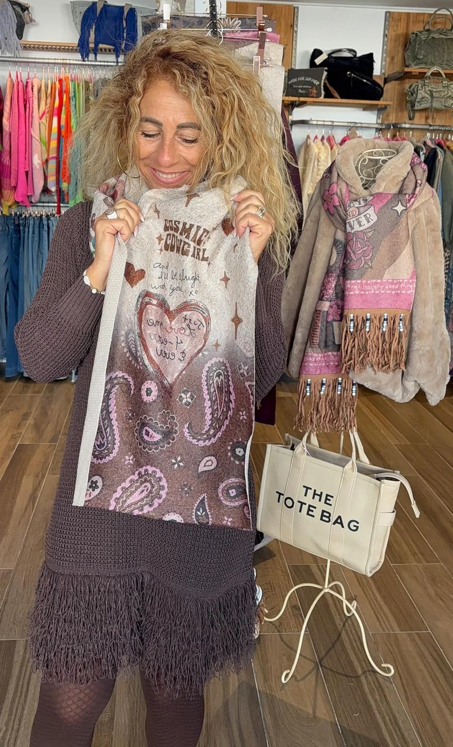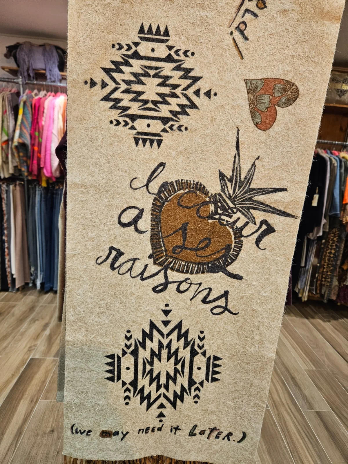 Vous êtes frileuse et l’hiver a du mal à passer … Alors optez pour la douce écharpe bOHO CHIC! Elle est douce et ultra stylée…Et elle tient chaud! Elle a du style! Vous aimerez son petit côté ethnique et ses motifs joyeux « coeur », « love », ou « karma »