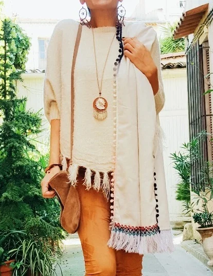 Echarpe ethnique pompons et franges
