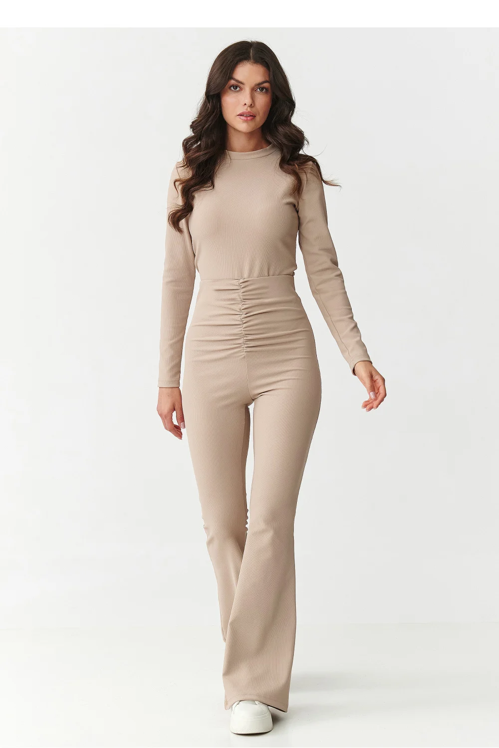 Misez sur un look alliant élégance et confort ! Cet ensemble de femme unique se compose d’un chemisier ajusté à manches longues et d’un pantalon à taille haute et jambes évasées. Fabriqué dans un matériau côtelé de haute qualité, il met joliment en valeur la silhouette et assure un confort tout au long de la journée. Le chemisier a une coupe classique avec un décolleté montant et se ferme à l’arrière par une fermeture éclair, le rendant à la fois confortable et très élégant. Le pantalon taille haute souligne la taille et modèle la silhouette, tandis que les jambes évasées de type flare allongent visuellement les jambes grâce aux plis à la taille. Disponible dans quatre couleurs intemporelles : bordeaux féminin et sensuel, noir classique s’adaptant à tout, chocolat moderne et audacieux, beige élégant et subtil. C’est un ensemble qui conviendra à de nombreuses occasions, des soirées aux sorties festives en passant par les tenues de travail. Il suffit d’ajouter vos chaussures à talons préférées et des bijoux pour créer un look élégant et moderne.
