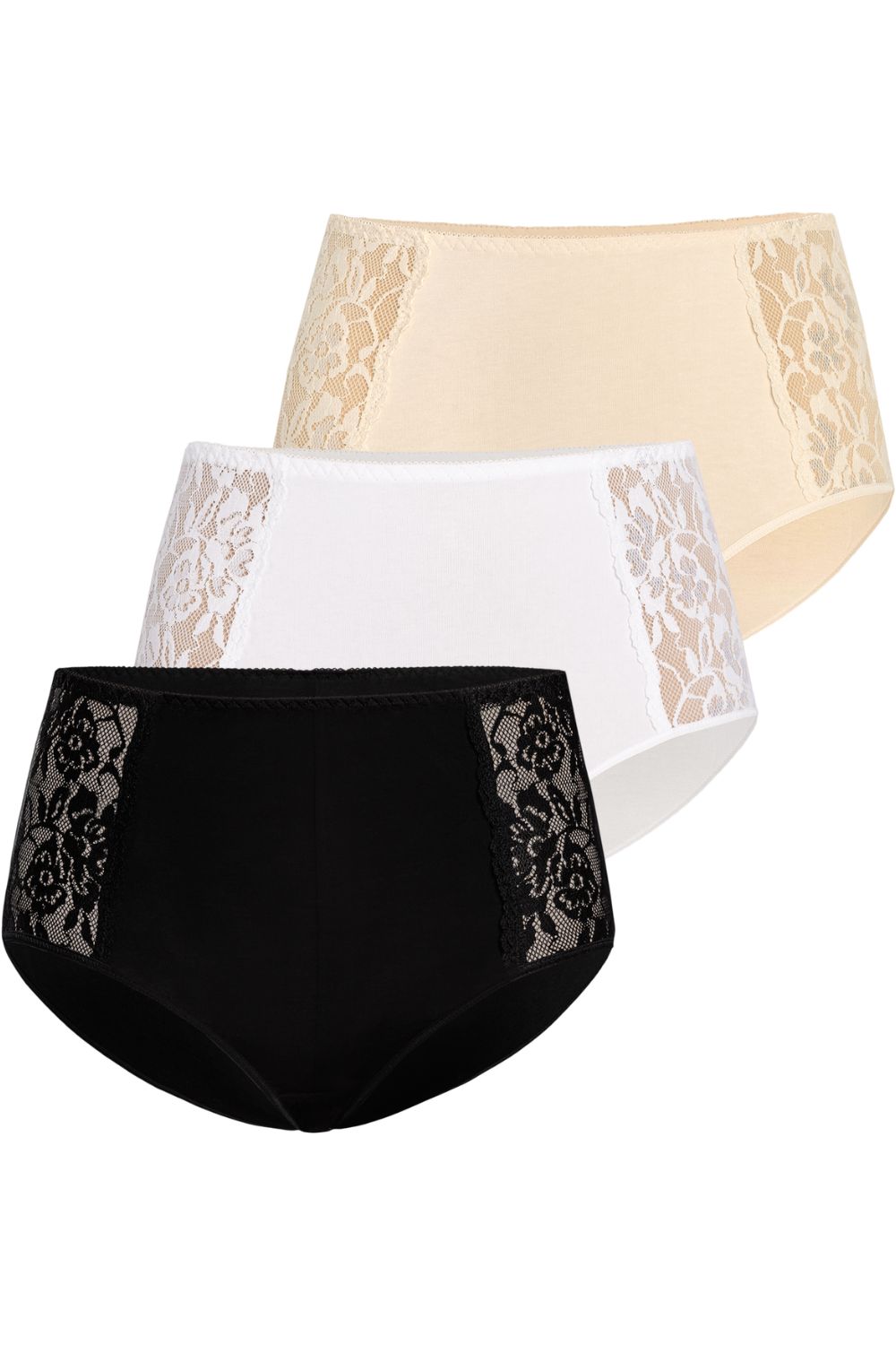 Les culottes Loren sont vendues en paquet de trois, sont populaires sur le marché de la lingerie et sont facilement achetées par les clients en raison de leur prix nettement inférieur. Le multipack comprend trois couleurs de base : noir, beige et blanc, de la taille XS à la taille XXL. Les trois couleurs de la culotte permettent de choisir la bonne couleur sous les vêtements portés par les femmes. Le beige est parfait sous un pantalon ou une jupe blanche, car il se fond avec la couleur de la peau et la culotte est invisible. Le blanc convient également sous des robes d’été aérées. Les culottes noires, quant à elles, conviennent parfaitement aux vêtements colorés et sombres. En outre, les culottes Loren sont fabriquées en coton respirant de haute qualité, ce qui garantit qu’elles restent fraîches et confortables pendant leur utilisation. Elle est dotée d’une taille haute qui permet de dissimuler les imperfections féminines telles qu’un ventre et des côtés saillants. Les deux côtés du devant sont décorés d’une dentelle élastique et douce au motif floral dense. Une fine bande élastique est cousue dans la ceinture. Elle ne laisse aucune trace sur la peau, mais maintient la culotte à la bonne hauteur et l’empêche de glisser vers le bas. La culotte Loren est très agréable à porter et convient également sous des vêtements ajustés. Il est entièrement doublé à l’arrière et couvre l’ensemble des fesses.