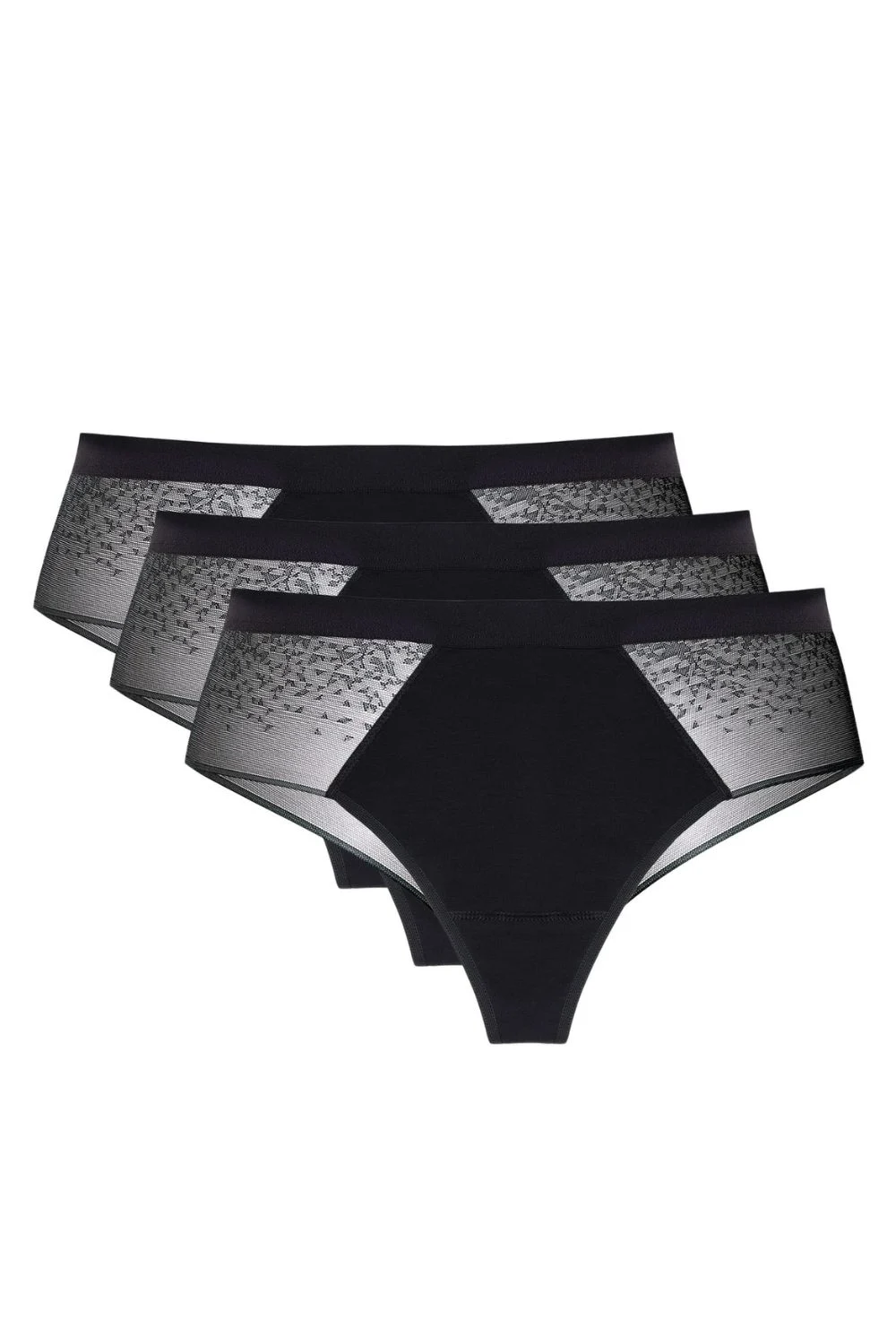 Un ensemble de trois strings en coton avec un dos en dentelle. Le dos en dentelle des culottes empêche de marquer sous les vêtements. Coupe confortable, idéale pour tous les jours. La bande élastique à la taille maintient efficacement la lingerie en place. Les strings sont confortables et n’irritent pas la peau. Le gousset est en coton agréable et sûr pour les parties intimes, avec la norme OEKO-TEX à 100% provenant d’une filature polonaise. Les culottes ont été conçues et fabriquées en Pologne.