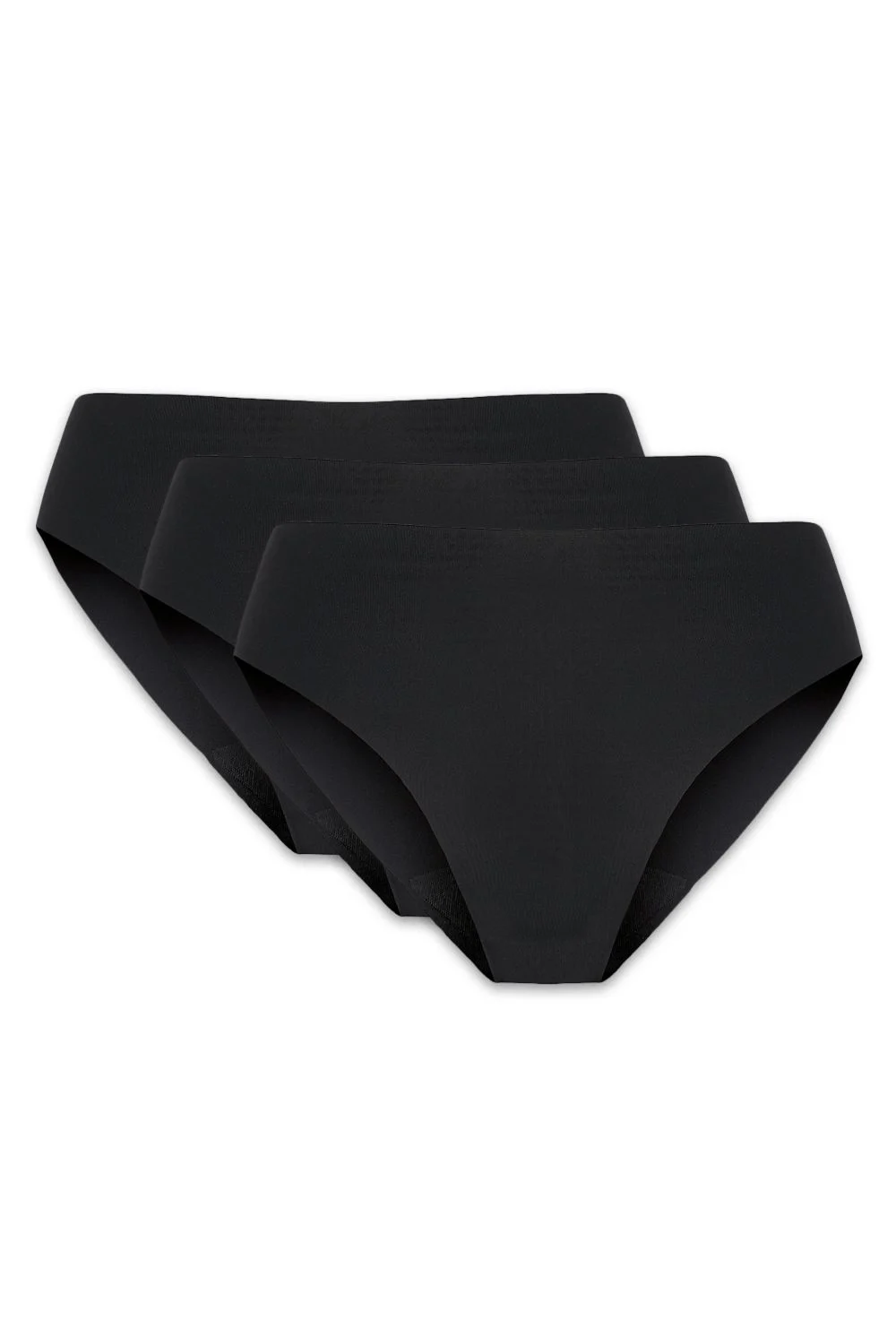 Pack de trois culottes sans couture. La coupe sans couture assure la discrétion, les culottes sont invisibles même sous des vêtements ajustés. Coupe confortable, idéale pour tous les jours. Le gousset est fait de coton agréable et sûr pour les parties intimes, ce qui rend les culottes sûres pour les parties intimes.
