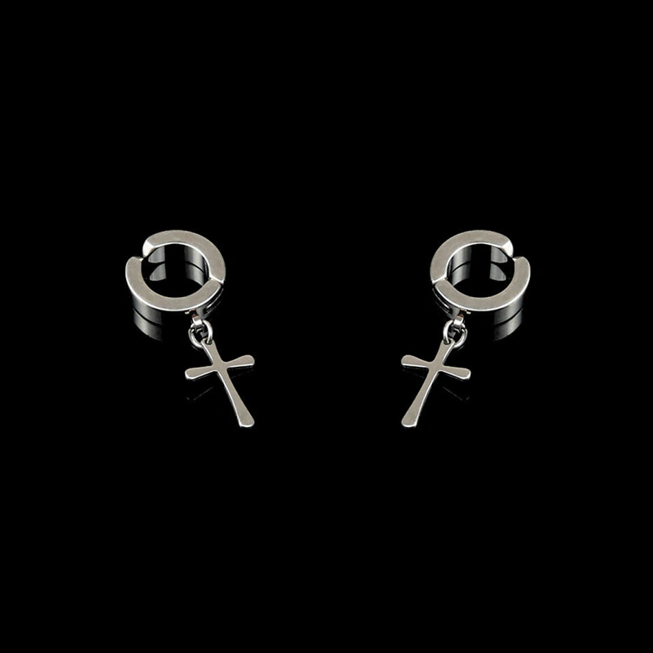 Faux Piercing Clip Oreille avec Croix Gothique