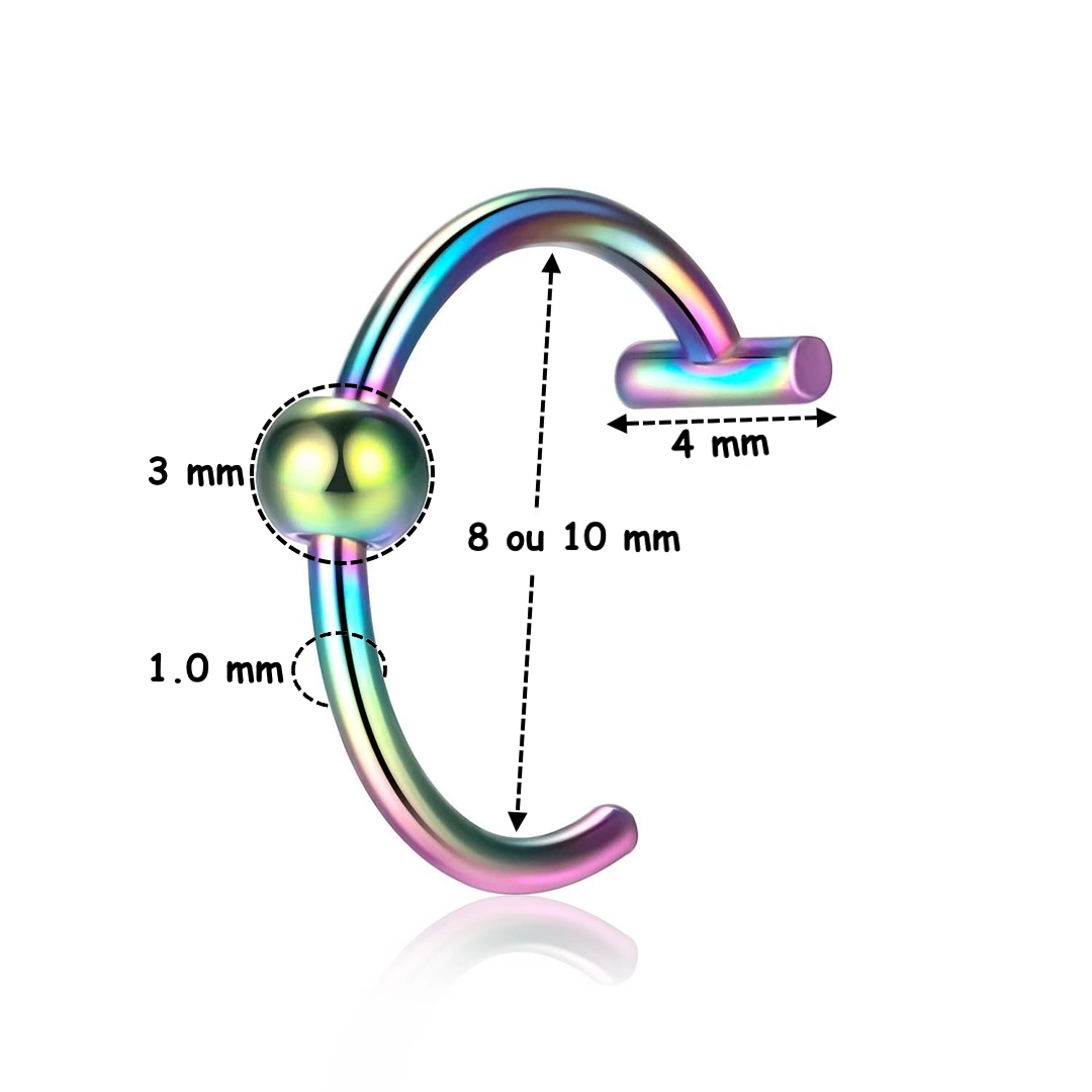 Faux piercing lèvre anneau perlé en acier 316L — Ø interne 8/10 mm, tige 1,0 mm. Finitions poli, noir/doré/or rose/multicolore PVD. Look réaliste, maintien sûr.