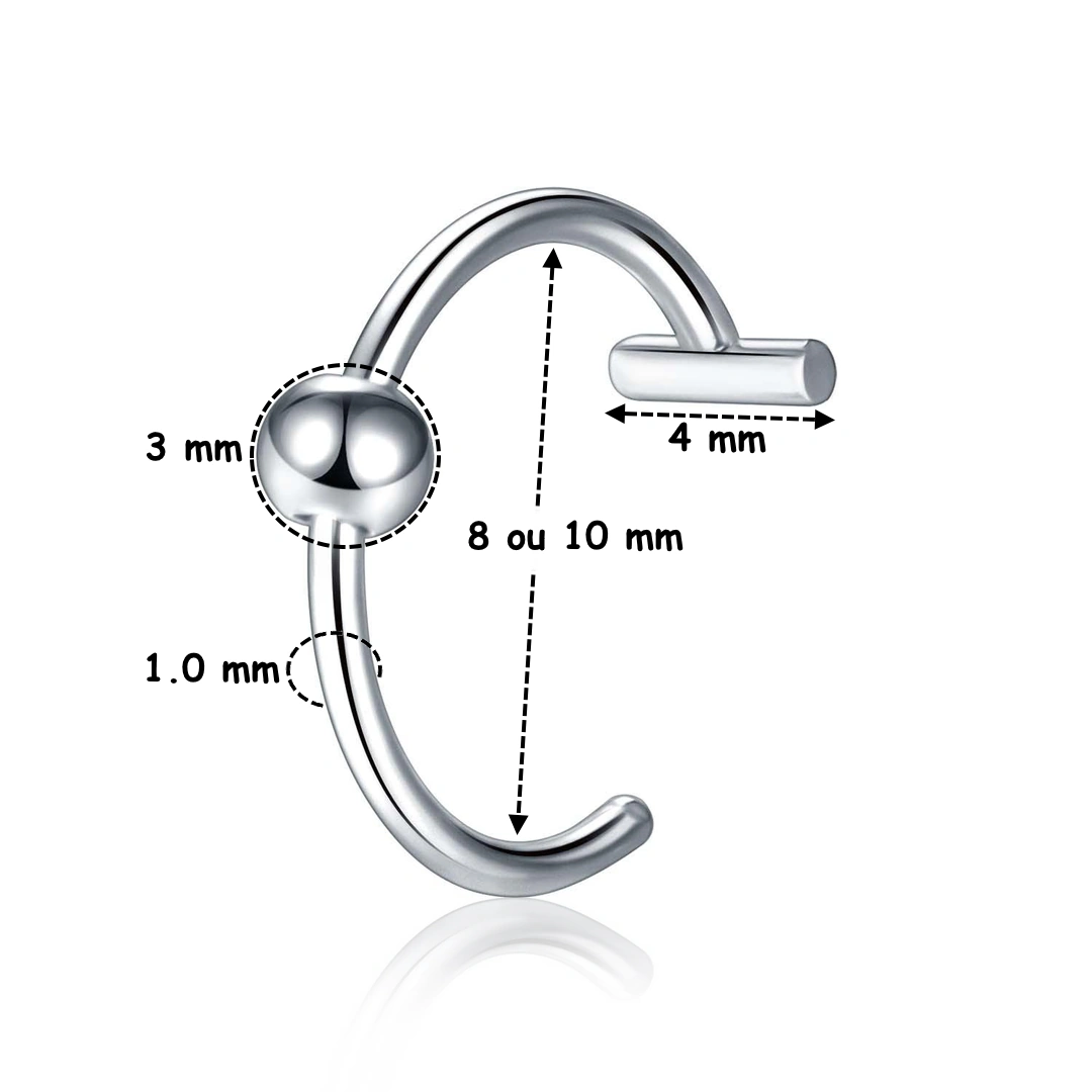 Conception technique : la tige de 1,0 mm assure une tenue douce et discrète dans l’orifice simulé ; à l’une des extrémités, une barre d’arrêt garantit un maintien fiable toute la journée et limite tout risque de glissement — idéal pour un port actif. Le bijou se propose en plusieurs finitions : poli, noir PVD, doré PVD, or rose PVD et multicolore PVD, pour coller à toutes les esthétiques.
