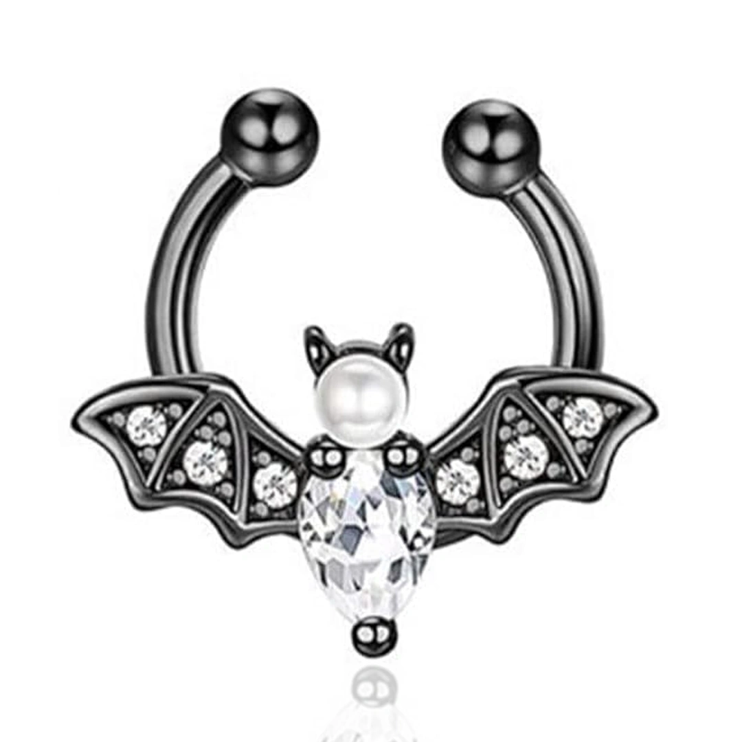 Faux Piercing Septum à Clip Chauve-Souris Scintillante