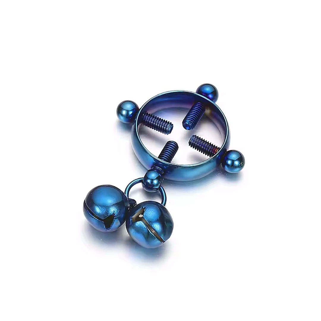 Ce faux piercing téton en forme d’anneau révèle vos courbes avec audace et intention. À la fois sensuel et espiègle, il est orné de deux clochettes de 9 mm, suspendues à l’une des quatre vis de serrage qui permettent un ajustement précis, sans perçage.