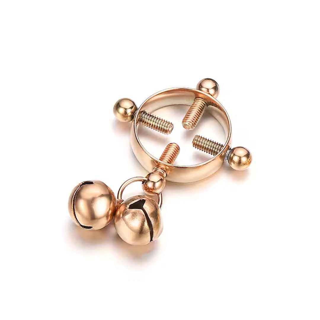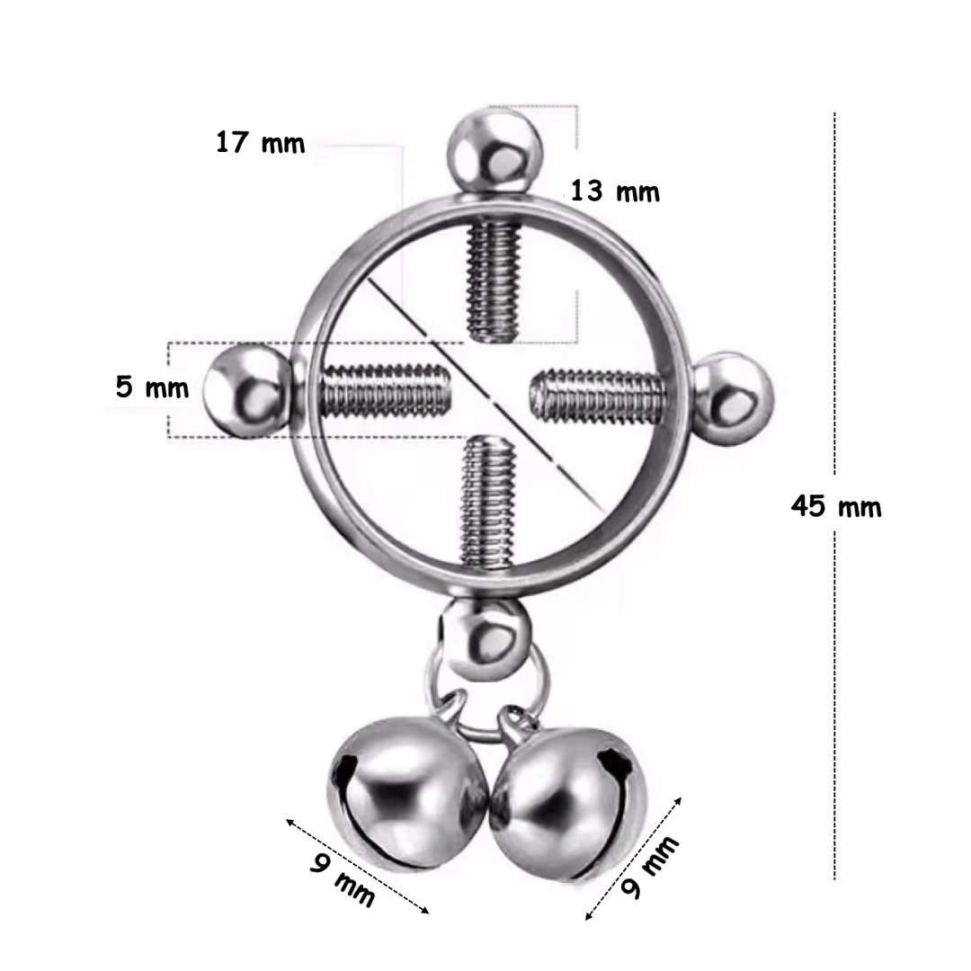 Sa structure en anneau, d’un diamètre total de 45 mm, épouse le mamelon en douceur, transformant chaque mouvement en invitation. Le léger tintement des clochettes ajoute un souffle de mystère, comme un secret chuchoté au creux de la peau.