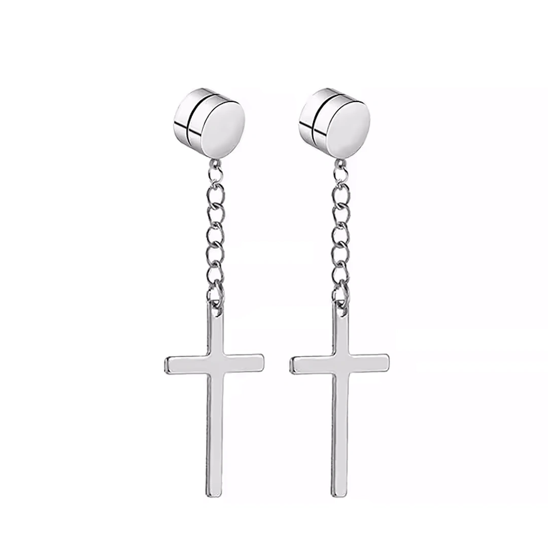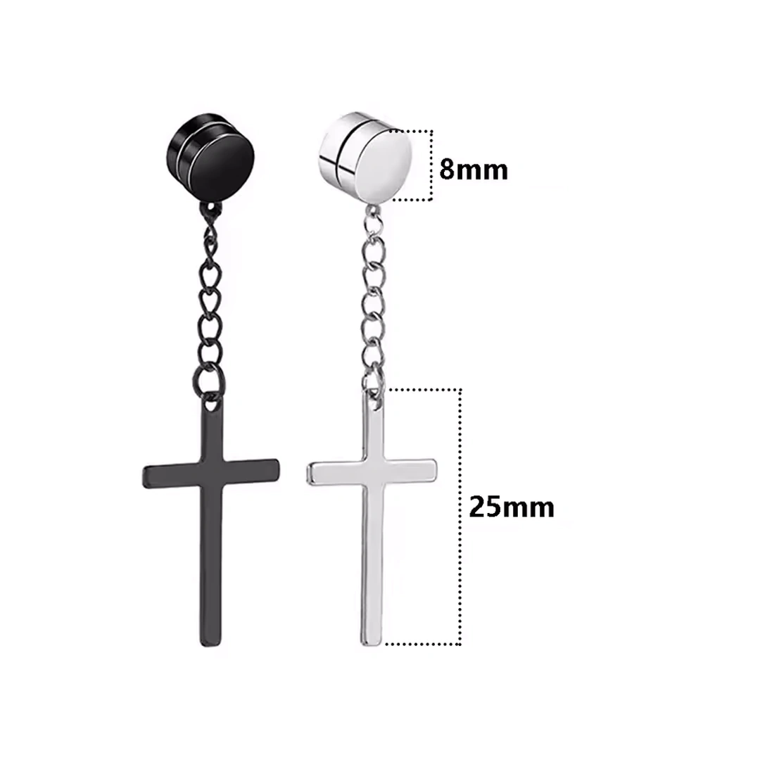 Exprimez votre singularité avec ce faux plug magnétique en acier inoxydable, une pièce à la fois audacieuse et raffinée. Son design minimaliste est rehaussé d’une croix gothique suspendue, symbole intemporel d’élégance et de rébellion. Vendu par paire
