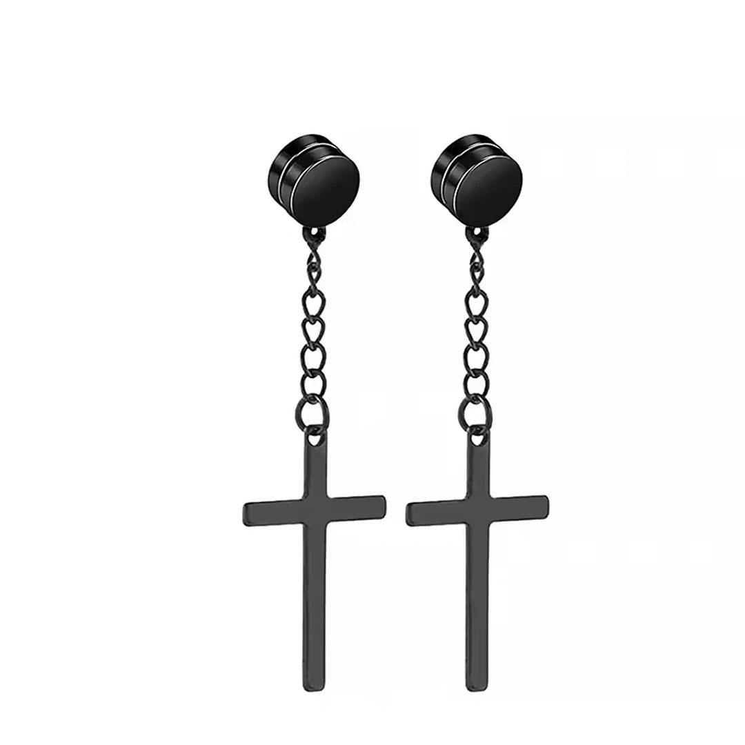 Faux Plug Magnétique en Acier Inoxydable Orné d’une Croix Gothique Suspendue