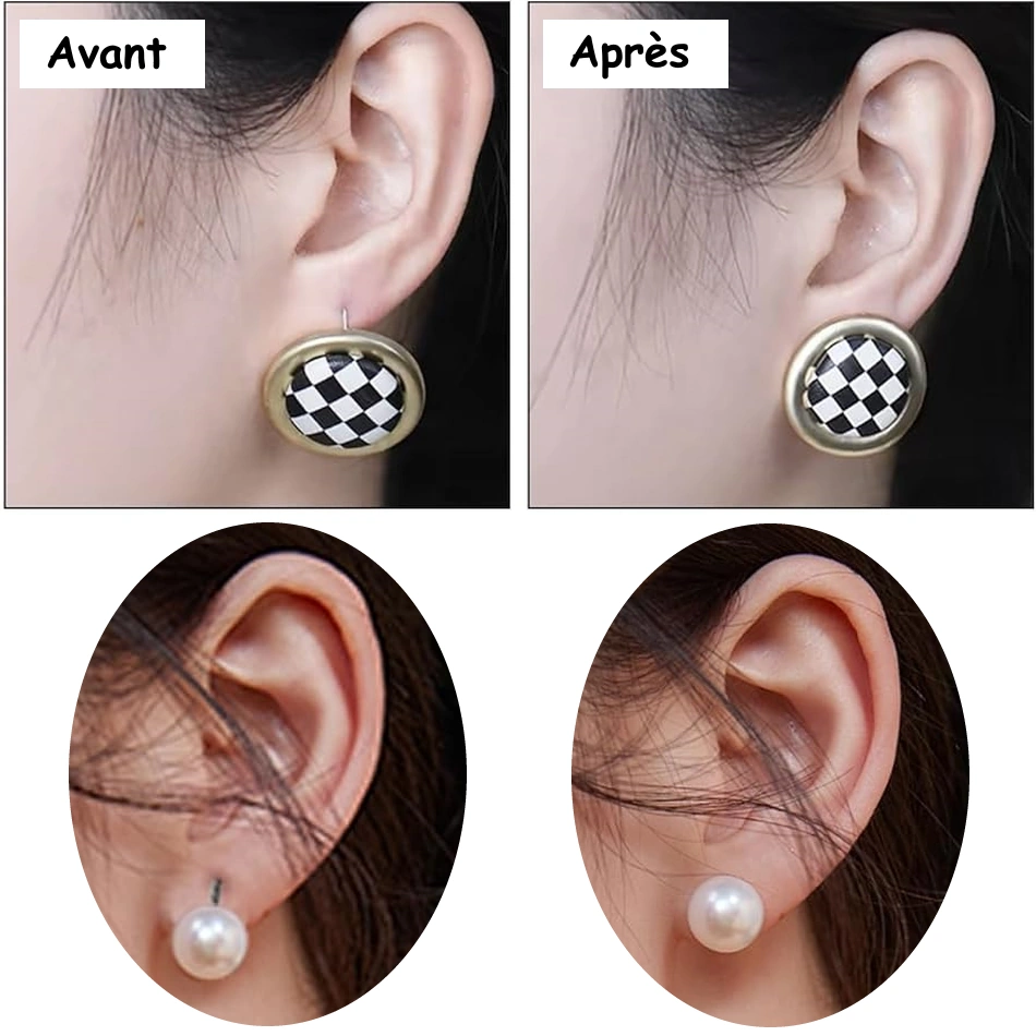 Légers et discrets, ces fermoirs réhausseurs se placent facilement derrière l’oreille, offrant à la fois praticité et style, pour un maintien optimal sans compromettre l’esthétique de vos bijoux.