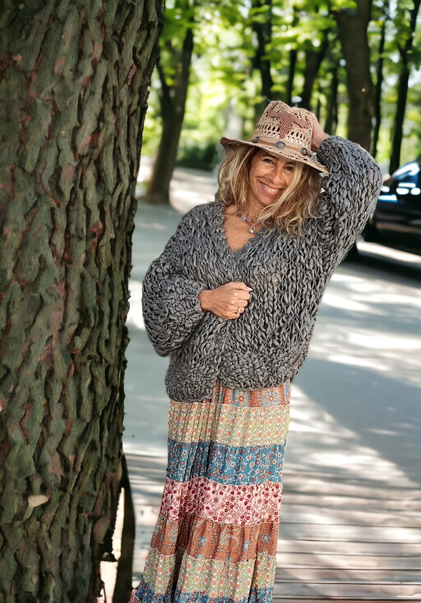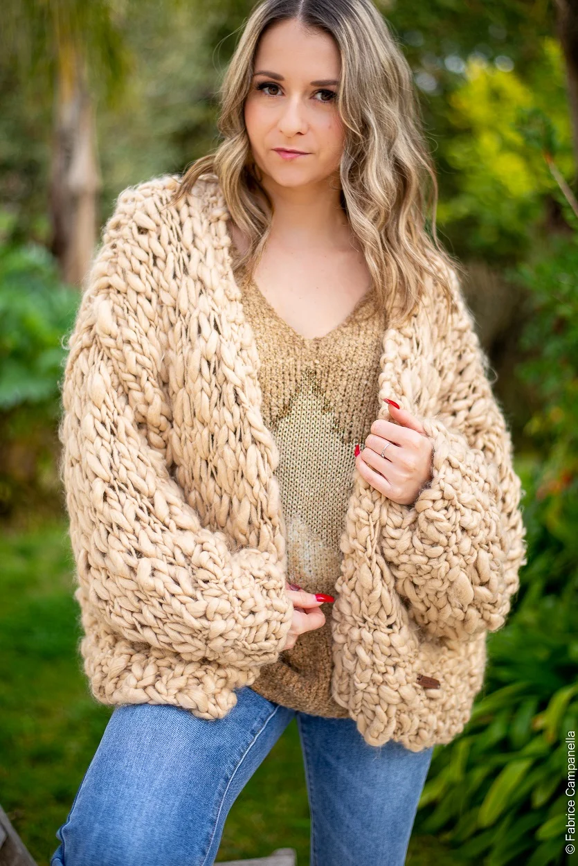 Vous craquerez pour le gilet grosse maille entièrement fait à la main et ses larges manches boules! Boho-chic, comme on l’aime, il se pose sur vous et il est stylé! Ouverture droite sans boutons. Doux sur la peau (100% synthétique) Le gilet grosse maille kaki convient sur toutes vos tenues branchées. Joli sur votre robe longue bohème ou votre jean flare! Il est à la mode et vous tiendra chaud! Manches boules, resserrées au poignet. Sa qualité +++ vous ravira!