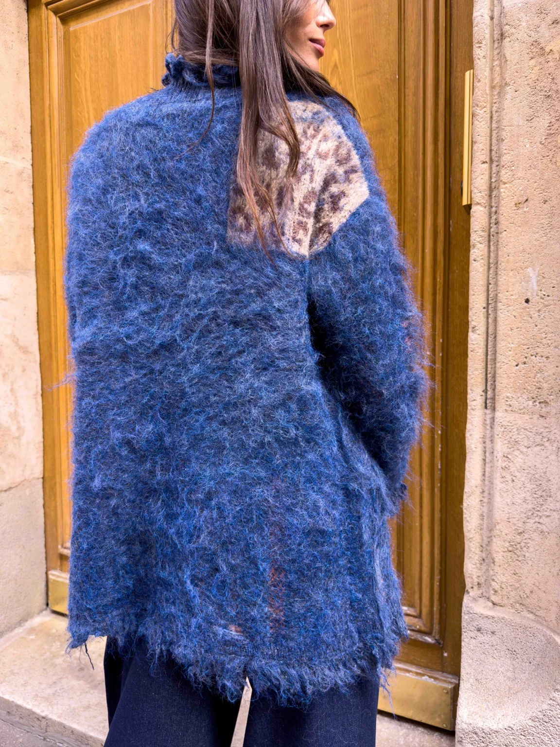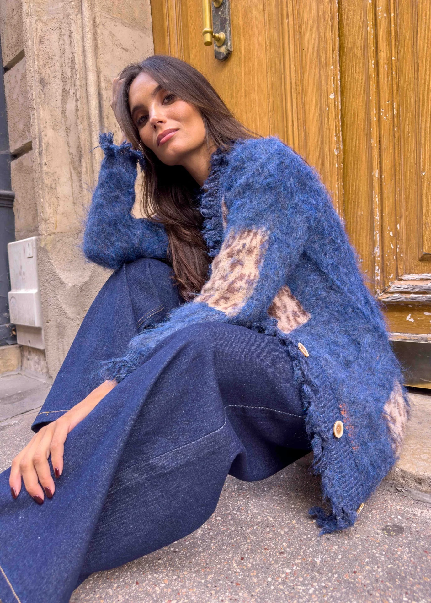 Vous craquerez pour le gilet TIGER bleu atlantique et son motif léopard. Un petit côté « street » et chic à la fois, sa coupe est ultra féminine. Une maille douce et chaude pour ce gilet Tiger mi-long aux finitions frangées. Il se pose sur vous et ajoute à votre look du jour une touche d’élégance, un brin sophistiqué! Se ferme par boutons. Jolie maille bleu atlantique, à celui-ci se mêle un doux patchwork léopard, ce qui lui donne un charme fou! Deux poches plates sur le devant.