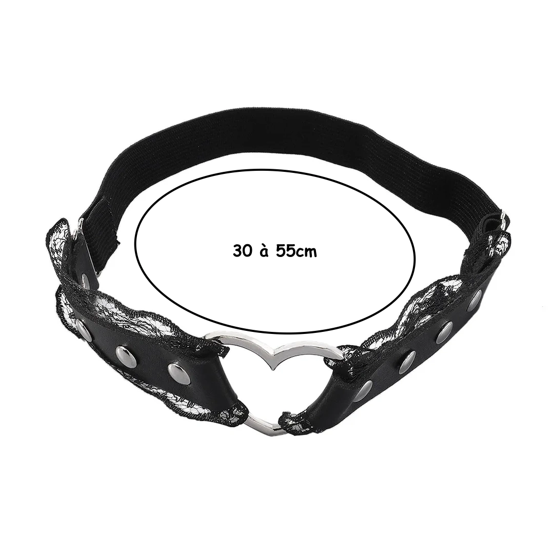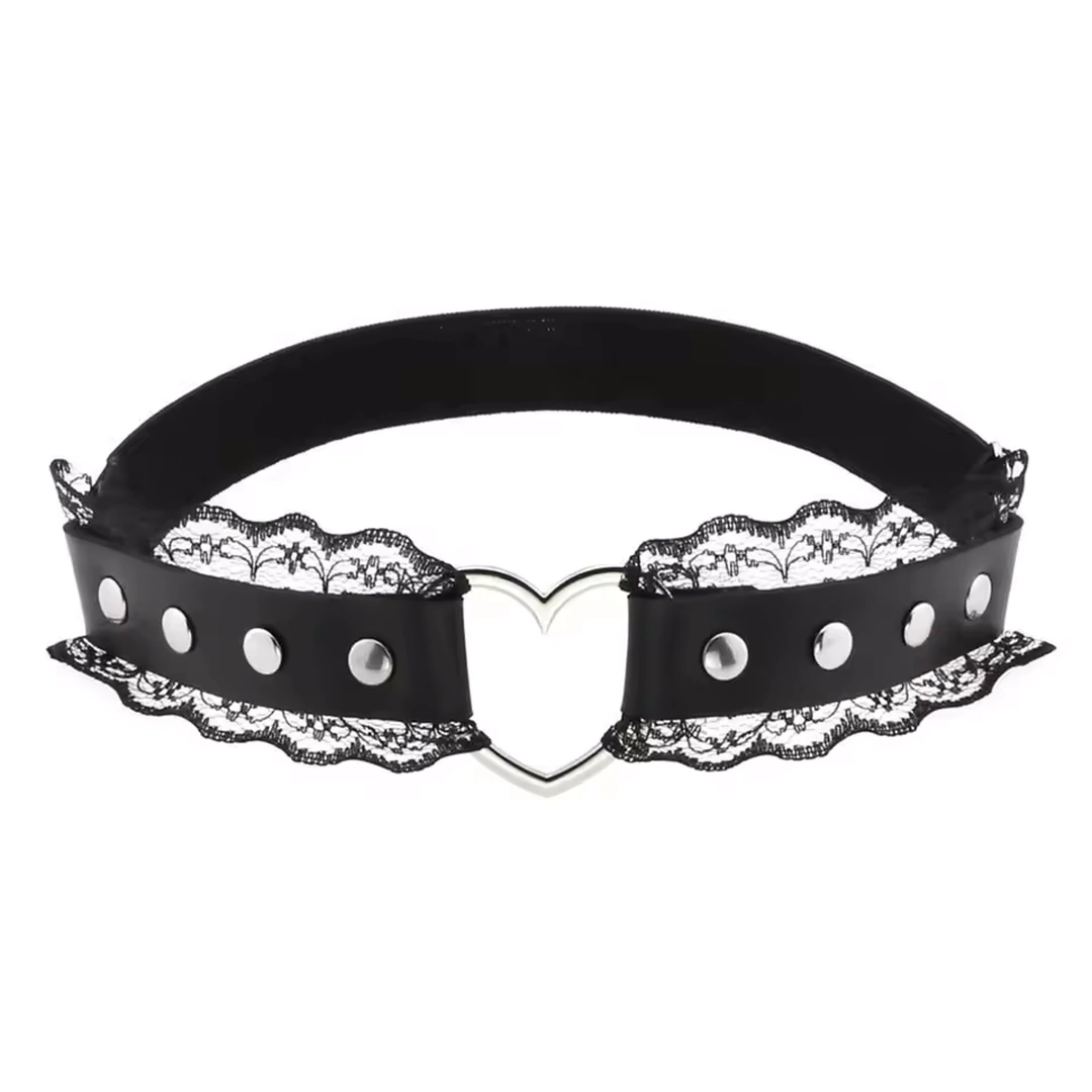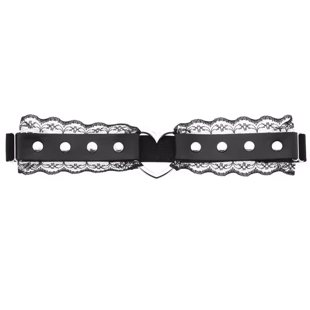Jarretière Gothique en Cuir & Dentelle avec Cœur Métallique