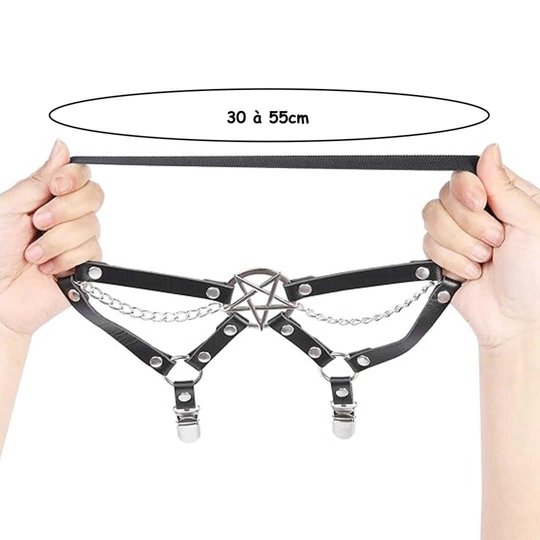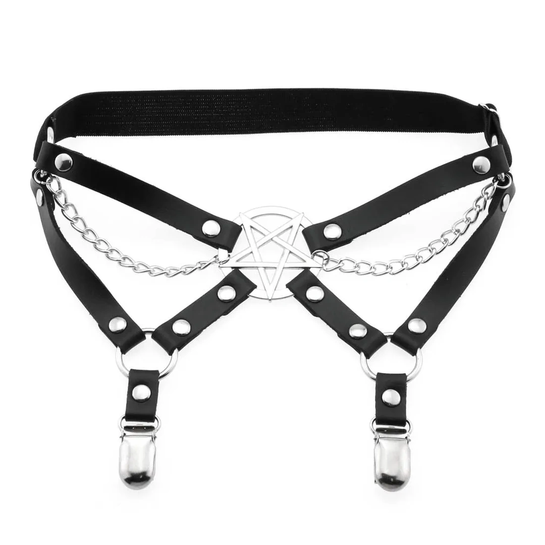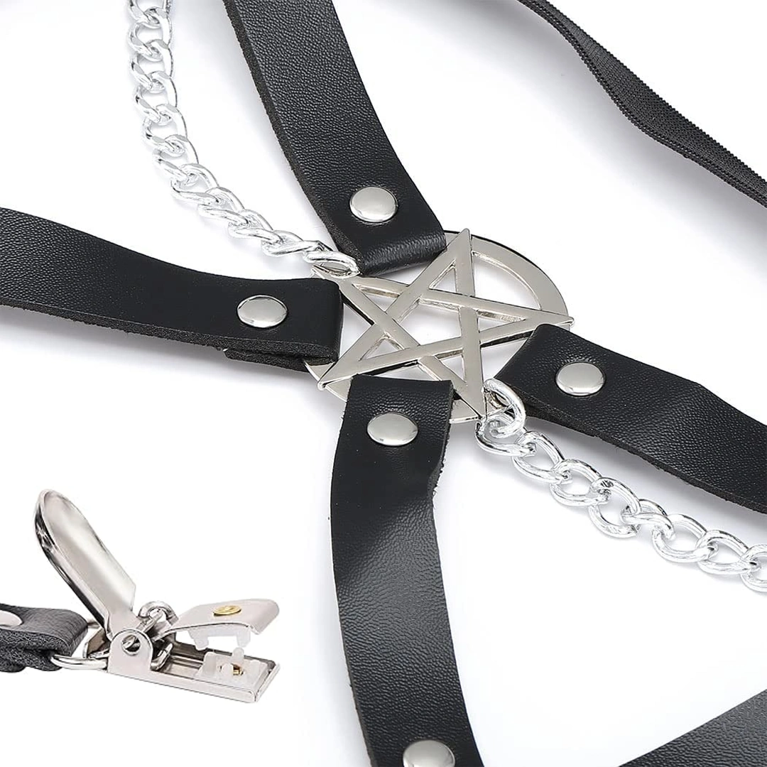 Jarretière Pentagramme Inversé & Chaînes avec Clips pour Bas