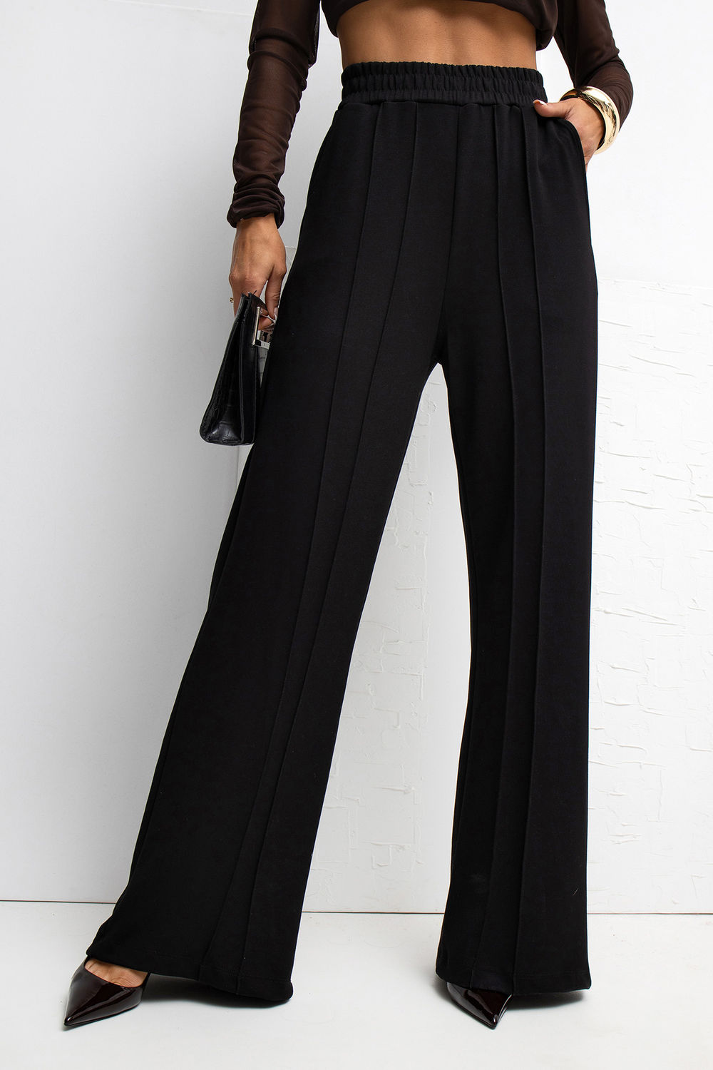 Pantalon de survêtement extrêmement confortable en matériau type beurre, très doux, délicat et agréable au toucher. Grâce au mélange de viscose et d’élasthanne, les pantalons sont élastiques, légers et parfaitement ajustés à la silhouette, offrant un confort maximal au quotidien. Le modèle à coupe large à jambes larges séduit par ses larges jambes garantissant une liberté de mouvement et un look moderne. La taille haute avec une bande élastique assure un ajustement parfait et un confort de port, et l’absence de fermeture rend les pantalons faciles et rapides à enfiler. Le motif lisse dominant leur donne un caractère minimaliste, tandis que les poches latérales insérées ajoutent de la fonctionnalité sans perturber la ligne épurée du modèle. Parfait pour les femmes appréciant le confort, la douceur et le style moderne et décontracté.
