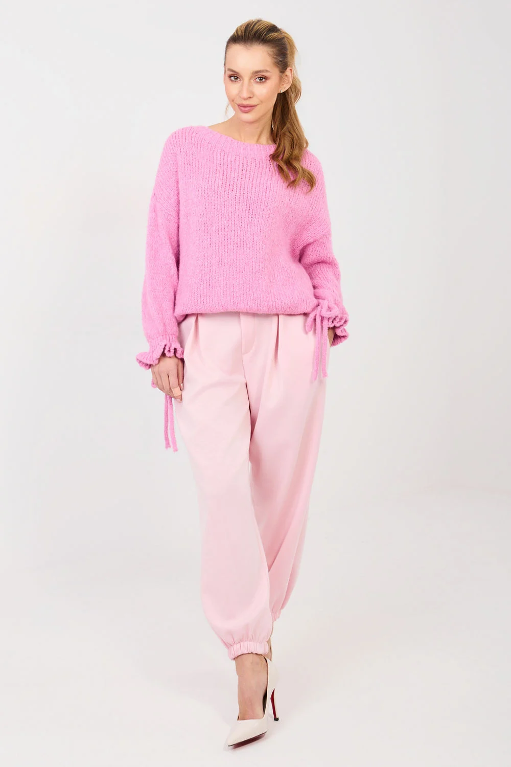 Les pantalons de jogging décontractés sont un mélange de confort et d’apparence élégante, parfaits pour tous les jours et pour travailler dans un style décontracté. Fabriqués dans un mélange doux et élastique de viscose avec une touche d’élasthanne, ils assurent un confort de port et une liberté de mouvement. Le modèle lisse est orné de plis décoratifs à l’avant, ce qui donne aux pantalons un caractère élégant. À l’arrière, une bande élastique cousue garantit un bon ajustement à la silhouette. Les bas des jambes finis par des poignets soulignent le style des joggeurs et assurent un confort d’utilisation. Les pantalons n’ont pas de fermeture, et les poches latérales augmentent leur fonctionnalité. Le tout est complété par un bouton décoratif, ajoutant un détail élégant. Idéal pour les tenues quotidiennes avec un sweat-shirt, un pull ou une chemise.
