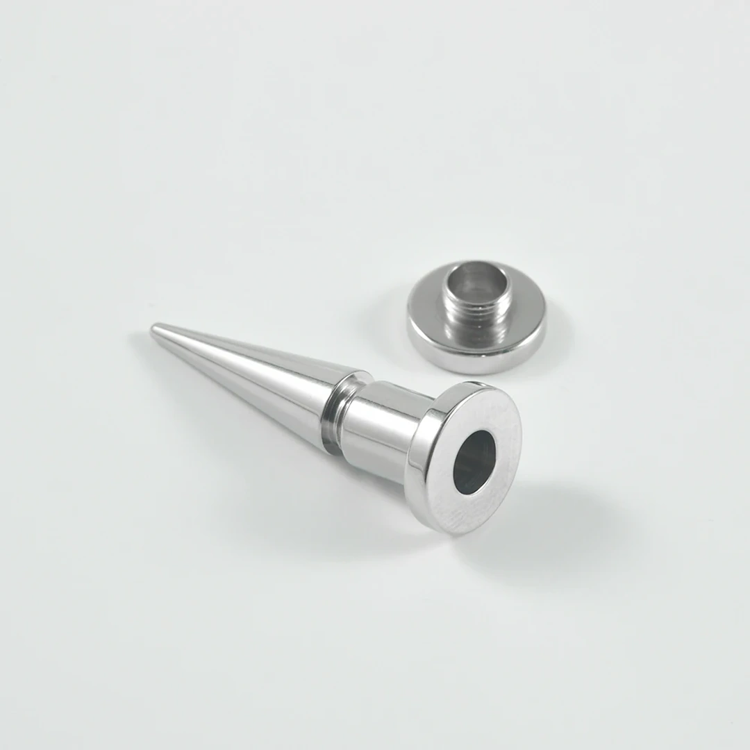Chaque pièce se compose d’un taper conique (pour élargir en douceur) et d’un tunnel à visser (pour un port prolongé, sans retirer l’écarteur). Une fois le diamètre atteint, il suffit de dévisser l’embout et de fixer le couvercle du tunnel. Rien ne dépasse, tout s’aligne — confort et style réunis.