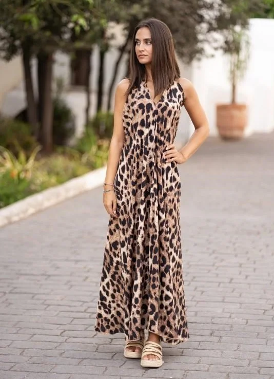Une soirée sur la plage, vous allez faire des jalouses! Plus qu’élégante mais aussi ultra confortable vous allez adorer cette robe longue au motif léopard de La Isla Bonita. Se noue dans le cou et autour de votre buste pour un joli dos nu.