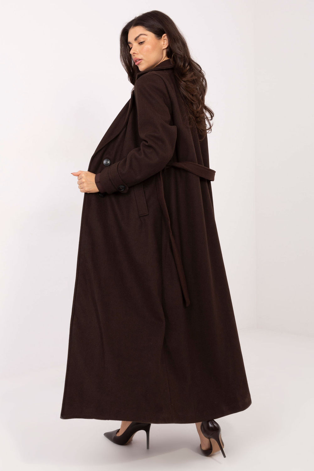 Le manteau long pour femme est une élégante proposition pour la saison de transition entre l’automne, l’hiver et le printemps. Fabriqué en polyester de haute qualité, dans un motif classique et lisse, il allie style et fonctionnalité. Avec des revers, un col large et une fermeture à double boutonnage, il souligne le caractère élégant de chaque tenue. Le manteau dispose de poches insérées, d’une ceinture à nouer à la taille et d’une doublure, assurant confort et aisance de port. Il conviendra parfaitement aux tenues quotidiennes, de soirée et de bureau, ajoutant de l’élégance et de la classe à chaque femme.